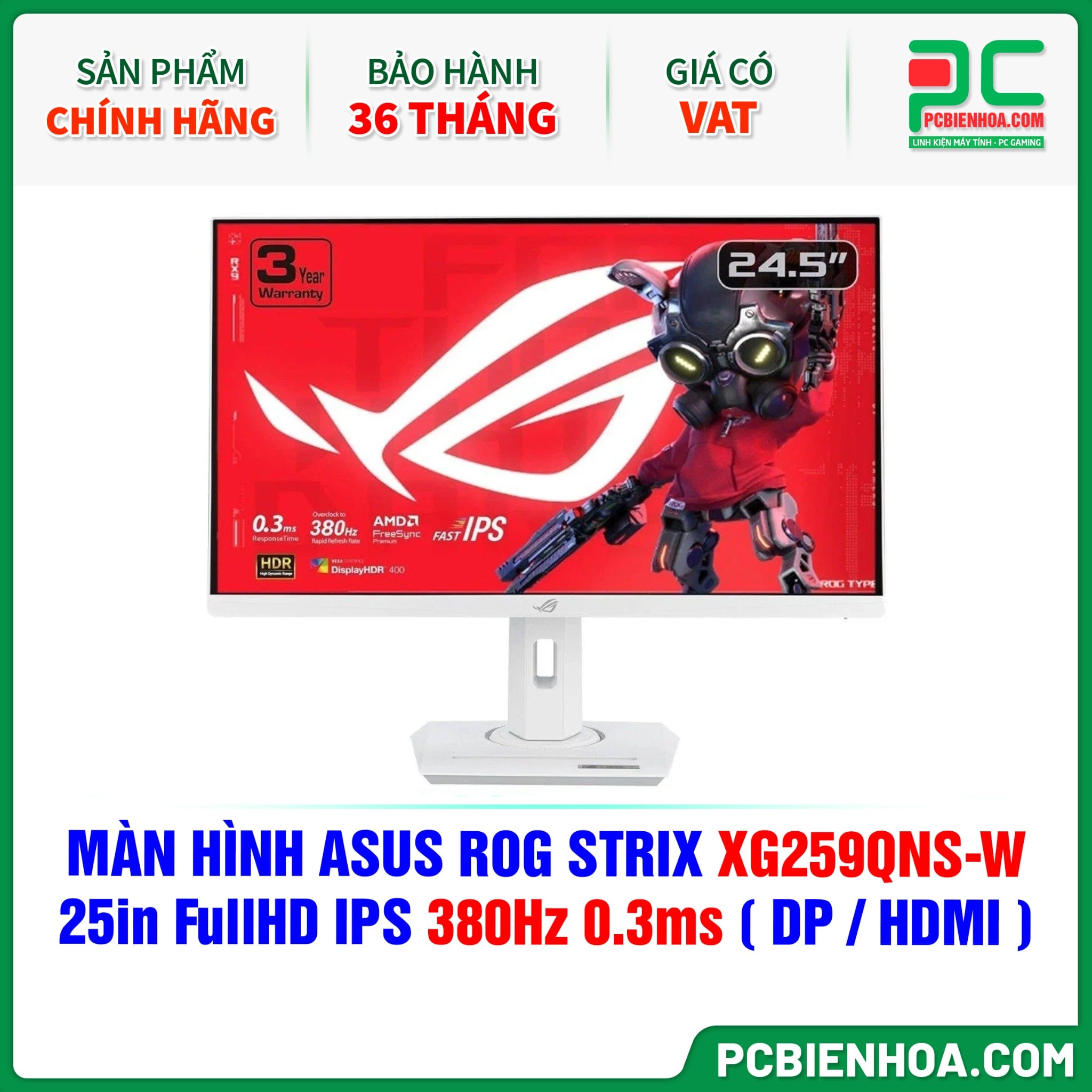MÀN HÌNH ASUS ROG STRIX XG259QNS-W TRẮNG - 25in FullHD IPS 380Hz 0.3ms ( DP / HDMI )