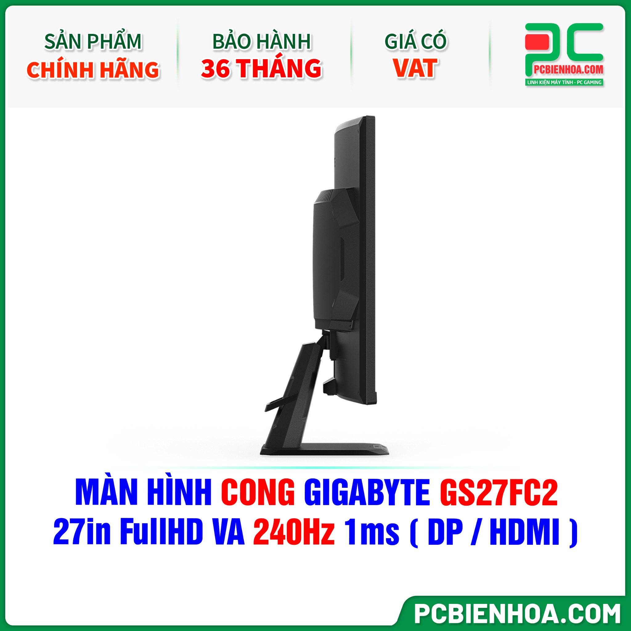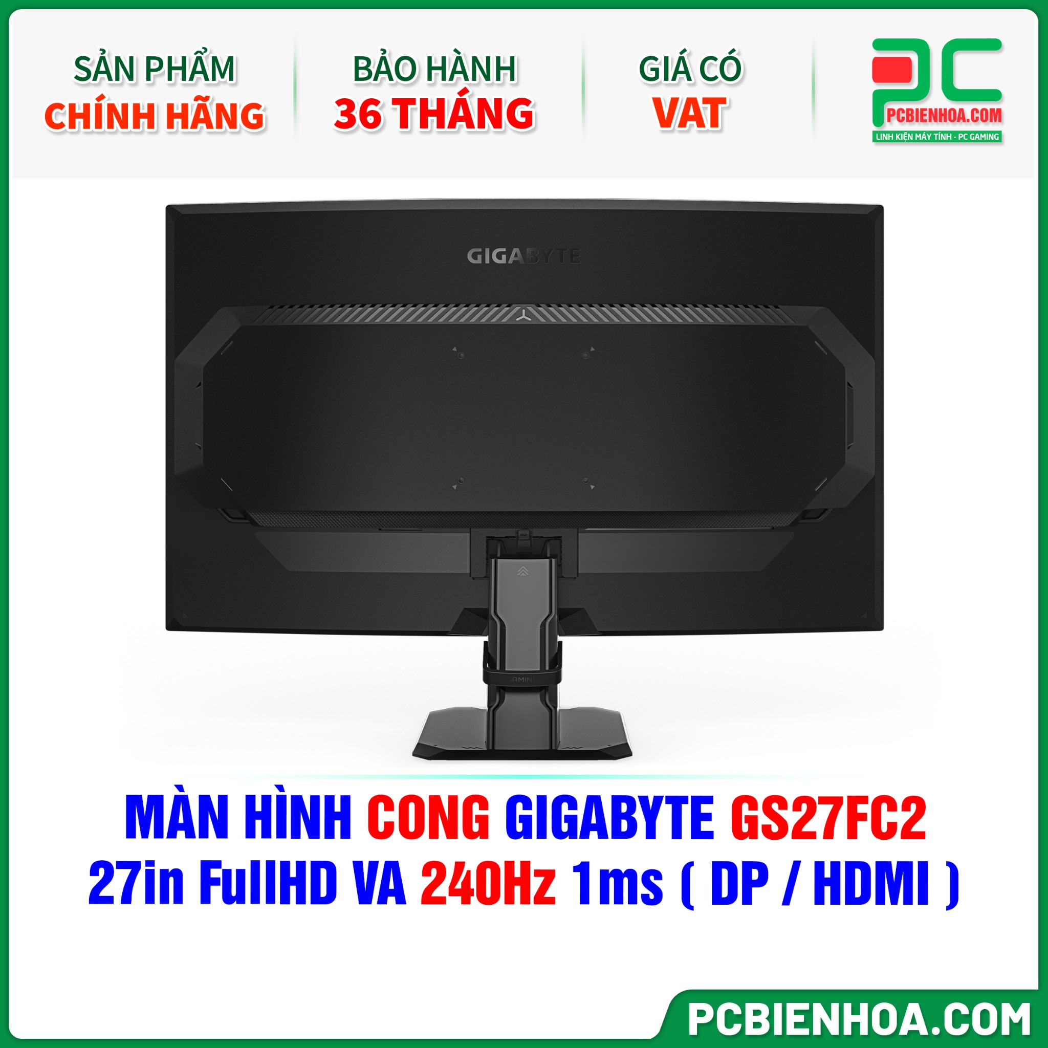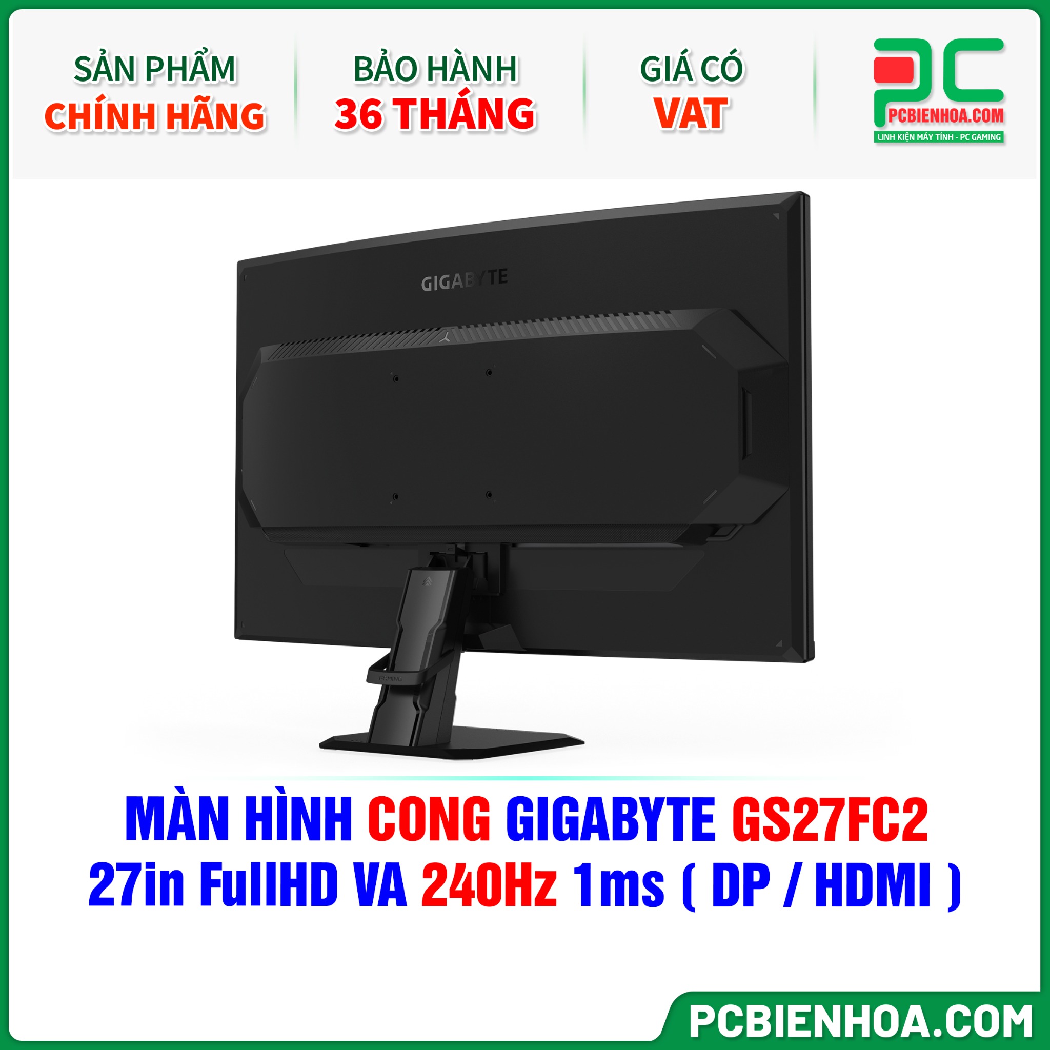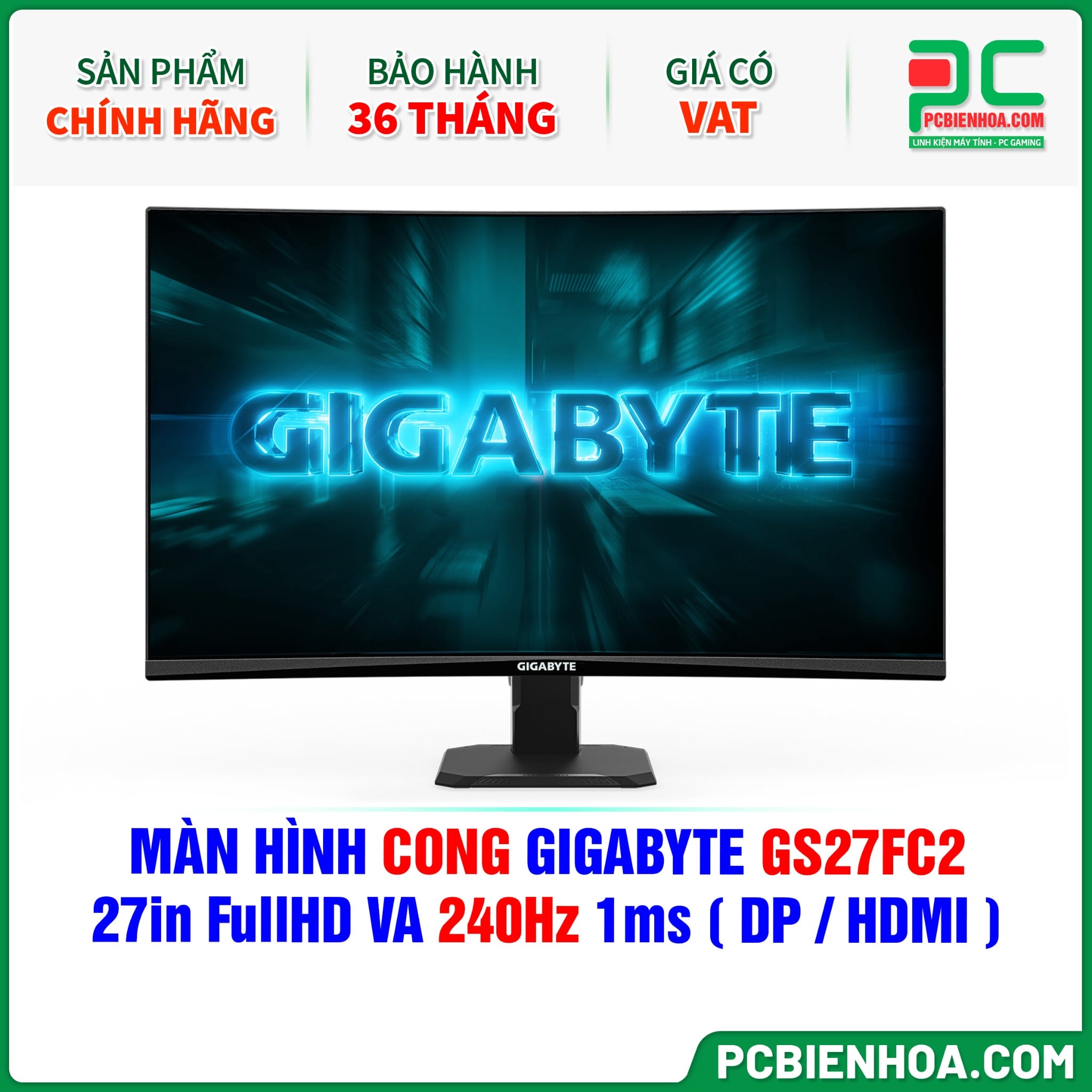 MÀN HÌNH CONG GIGABYTE GS27FC2 - 27in FullHD VA 240Hz 1ms ( DP / HDMI )