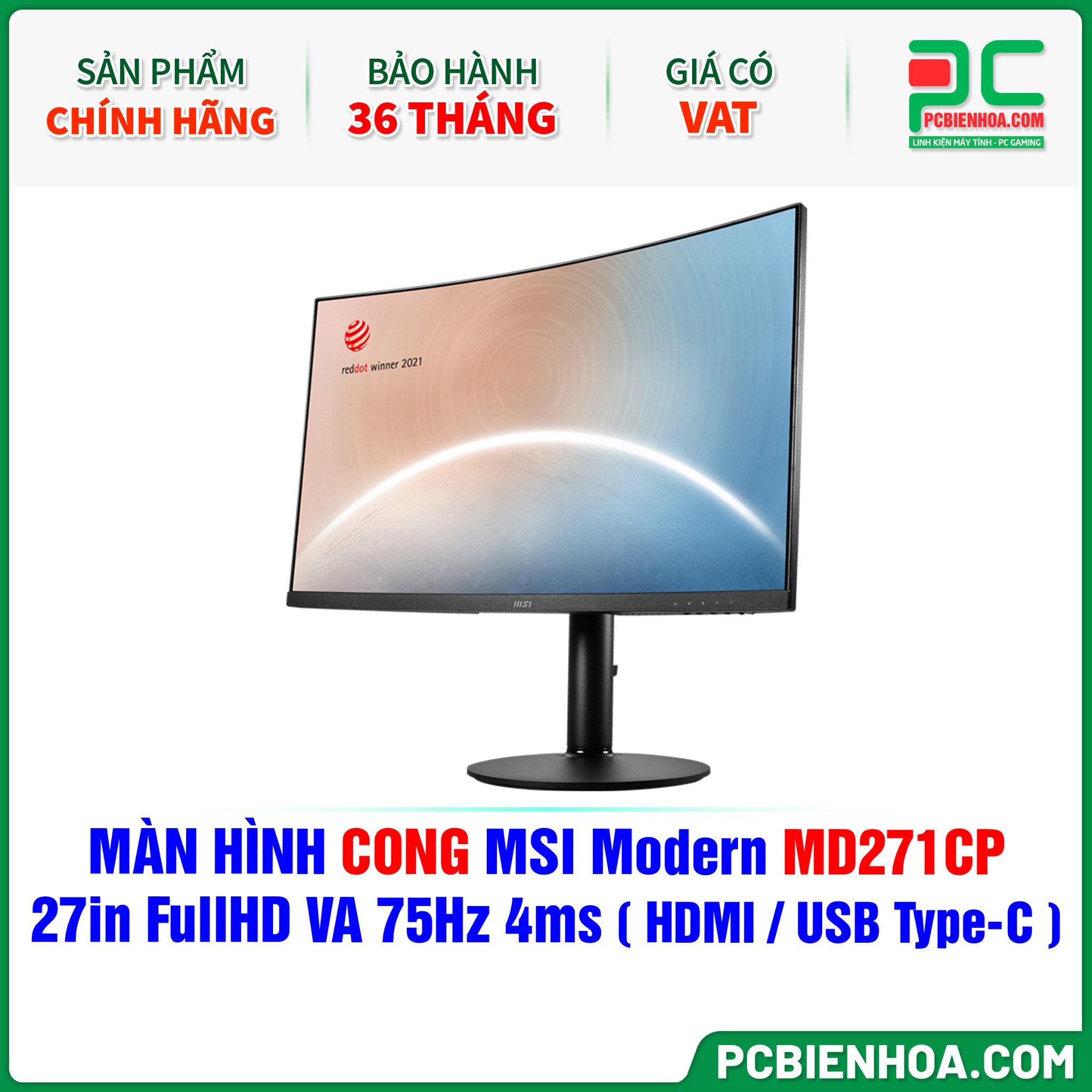 MÀN HÌNH CONG MSI MODERN MD271CP - 27in FullHD VA 75Hz 4ms ( HDMI / USB Type-C )