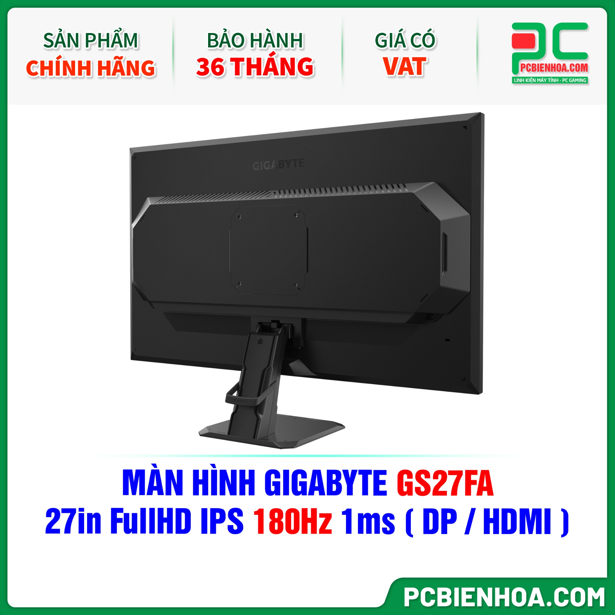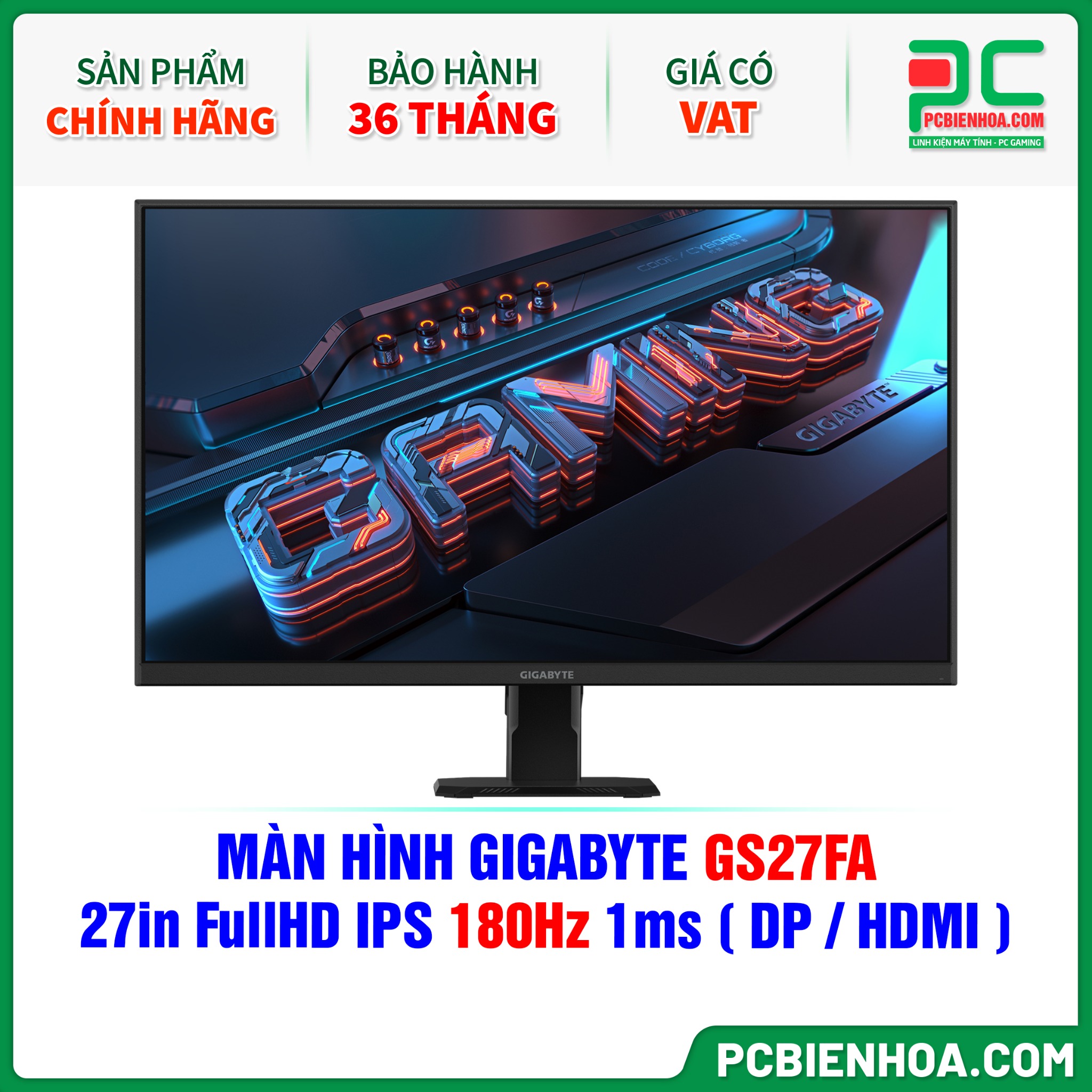 MÀN HÌNH GIGABYTE GS27FA - 27in FullHD IPS 180Hz 1ms ( DP / HDMI )