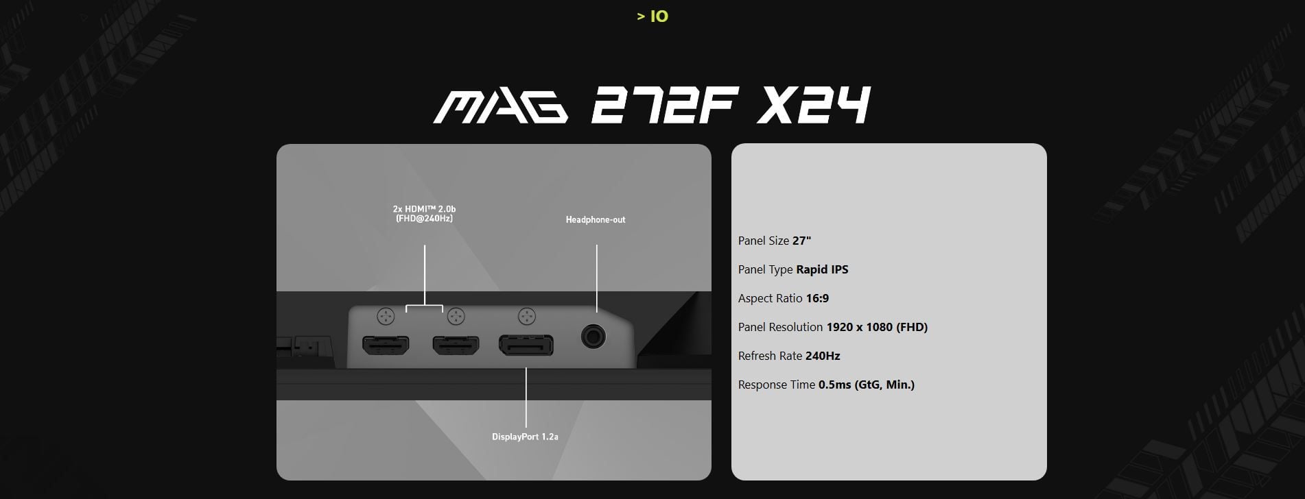 MÀN HÌNH MSI MAG 272F X24 - 27in FullHD IPS 240Hz 0.5ms ( DP / HDMI )