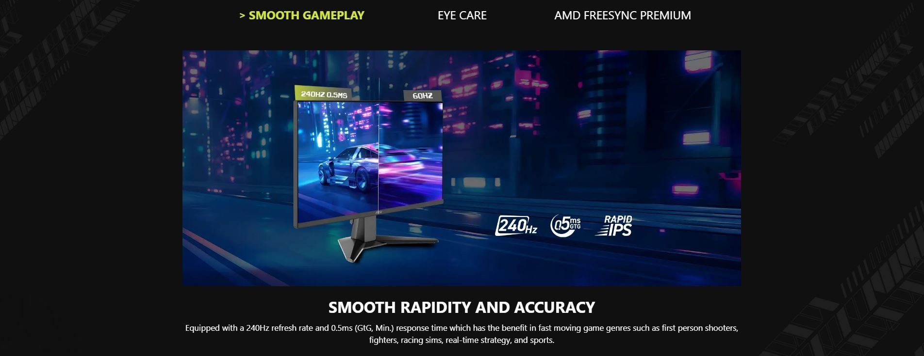 | Note | HDMI™: 1920 x 1080 (Up to 240Hz) DisplayPort: 1920 x 1080 (Up to 240Hz) Support: HDMI™ CEC; Non Support: KVM, PIP/PBP |