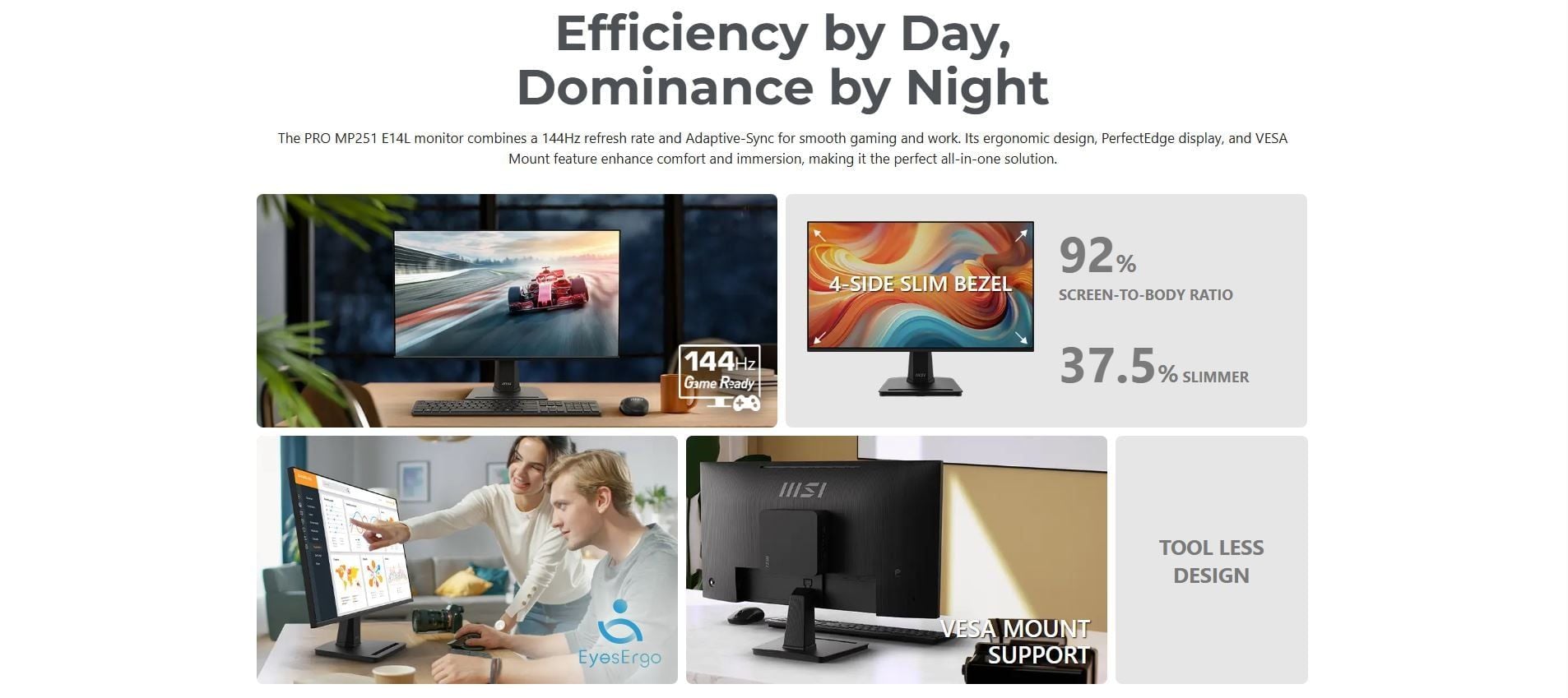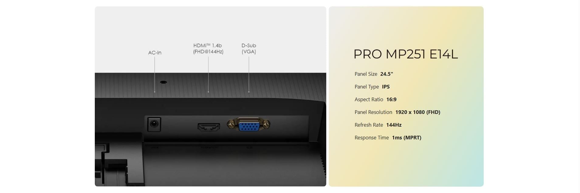 MÀN HÌNH MSI PRO MP251 E14L - 25in FullHD IPS 144Hz 1ms ( HDMI / VGA )
