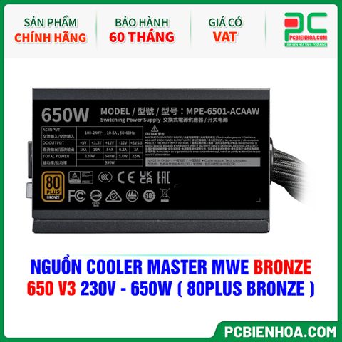 NGUỒN MÁY TÍNH COOLER MASTER MWE BRONZE 650 V3 230V - 650W ( 80PLUS BRONZE )