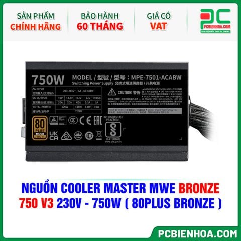 NGUỒN COOLER MASTER MWE BRONZE 750 V3 230V - 750W ( 80PLUS BRONZE )