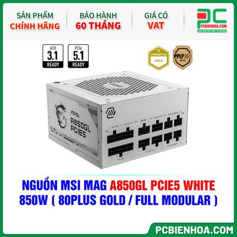 NGUỒN MSI MAG A850GL PCIe5 WHITE - 850W ( 80PLUS GOLD / FULL MODULAR )