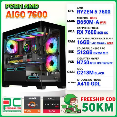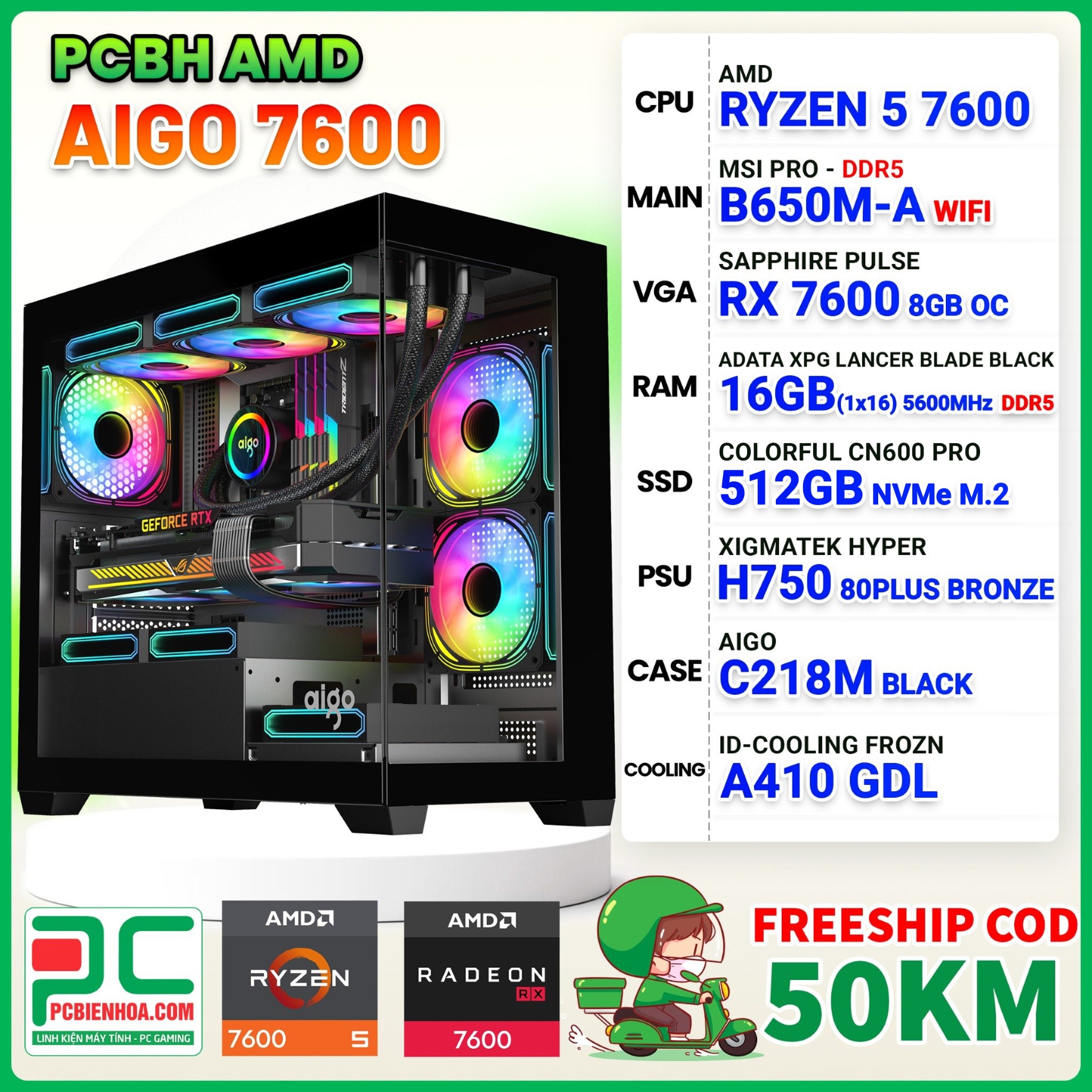 PCBH AMD AIGO RYZEN 5 7600 / B650M WiFi / RX 7600 8GB / 16GB DDR5 / 512GB