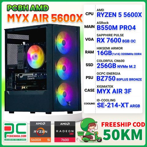PCBH AMD MYX RYZEN 5 5600X / B550M / RX 7600 8GB / 16GB / 256GB