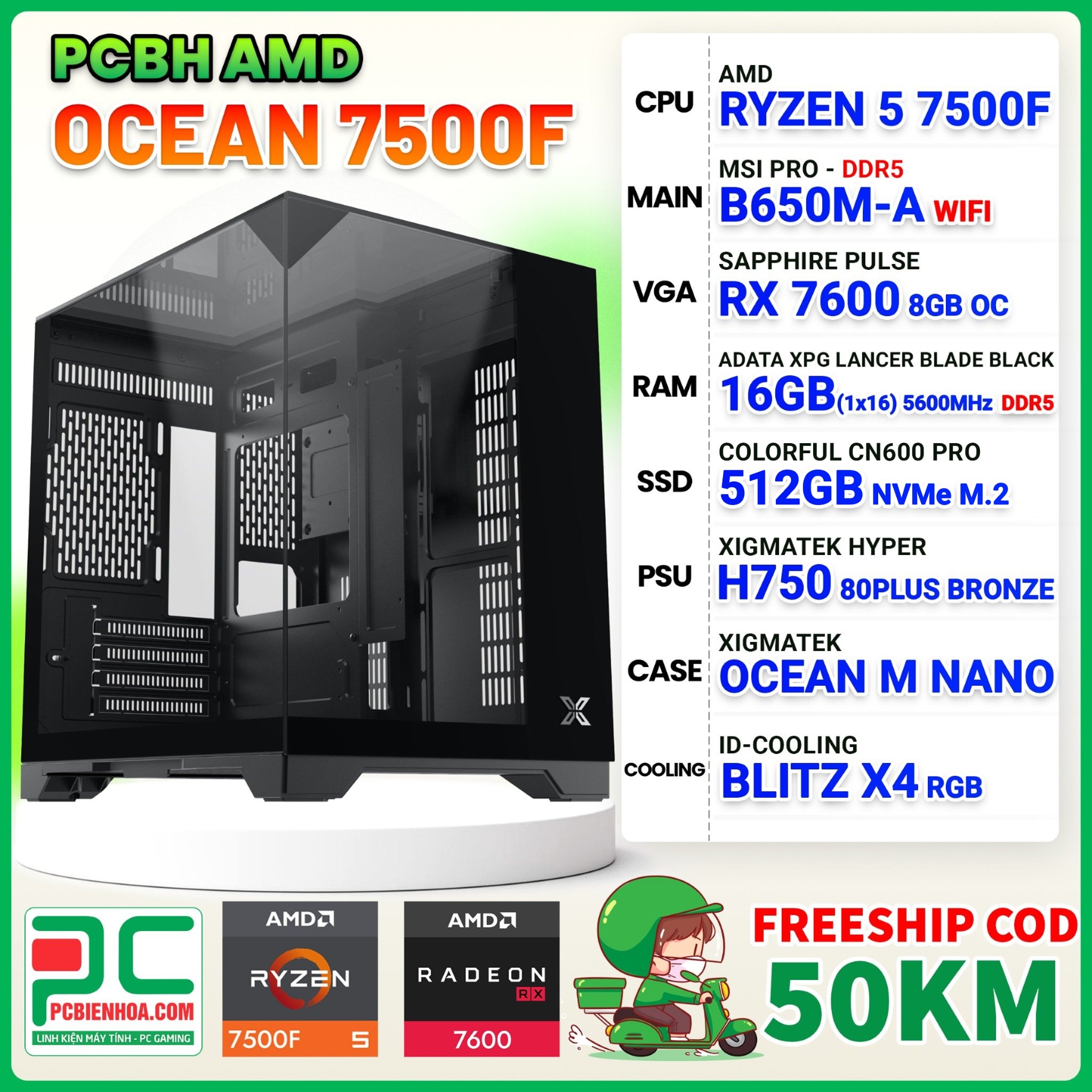 PCBH AMD OCEAN RYZEN 5 7500F / B650M WiFi / RX 7600 8GB / 16GB DDR5 / 512GB