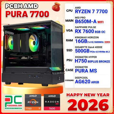 PCBH AMD PURA RYZEN 7 7700 / B650M WiFi / RX 7600 8GB / 16GB DDR5 / 500GB