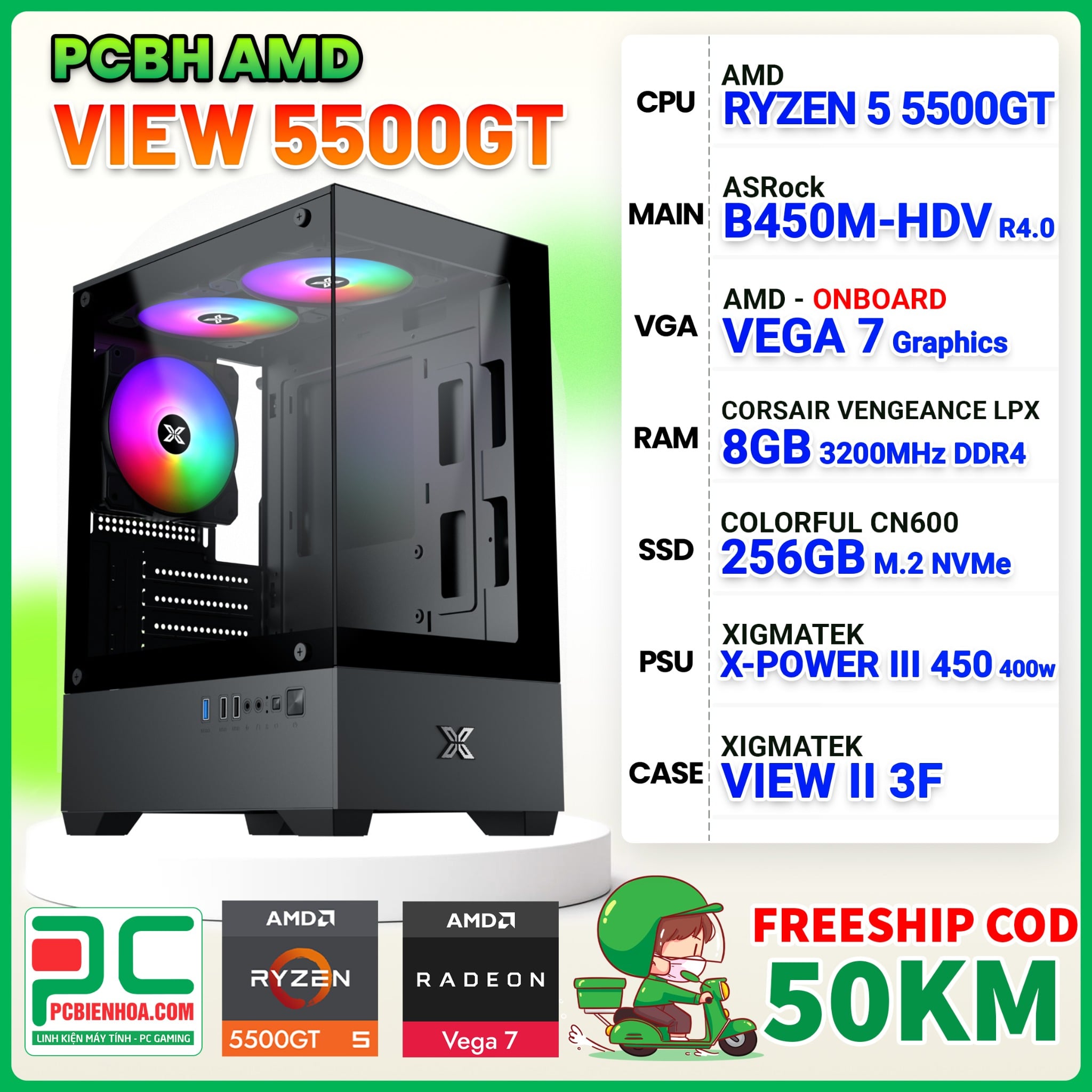 PCBH AMD VIEW RYZEN 5 5500GT / B450M / 8GB / 256GB