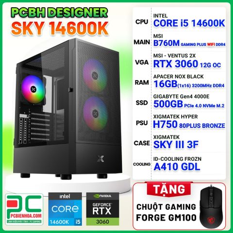PCBH DESIGNER SKY CORE i5 14600K / B760M WiFi / RTX 3060 12GB / 16GB / 500GB