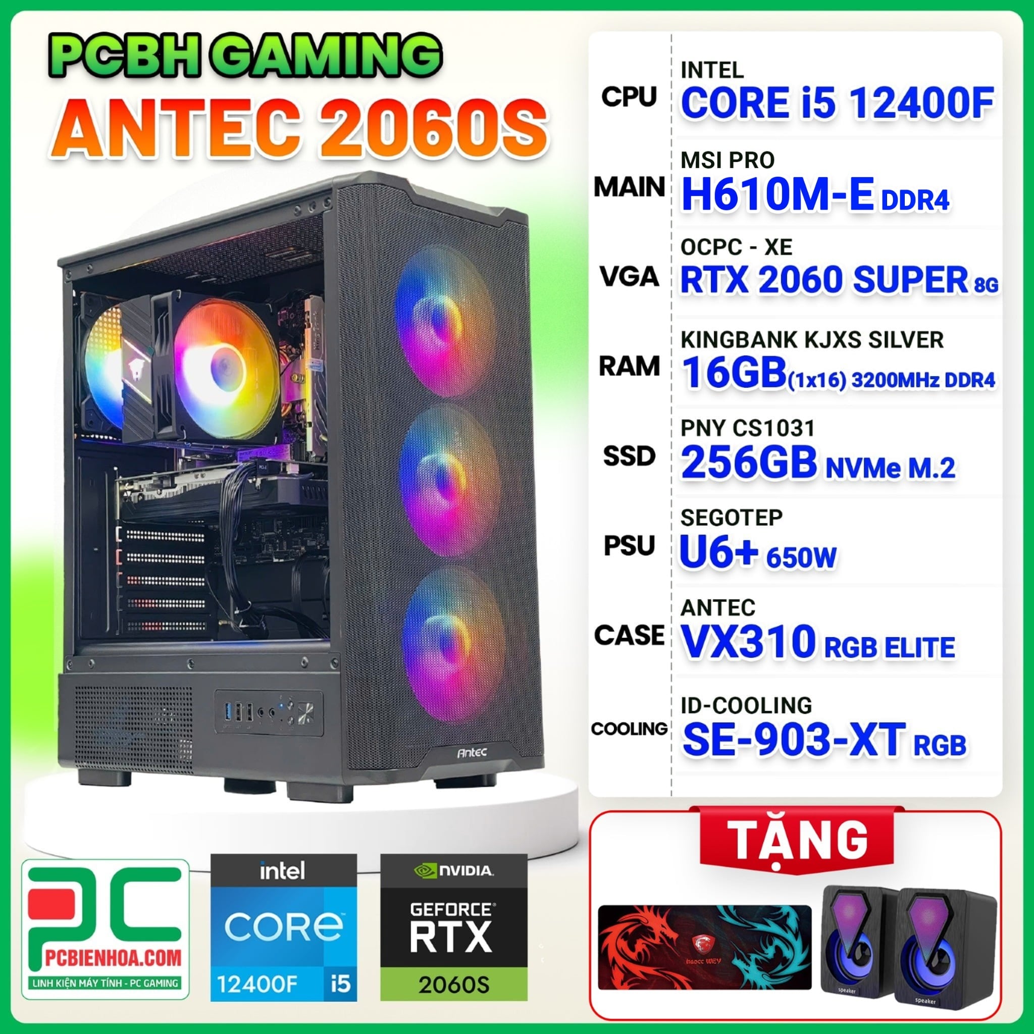 PCBH GAMING ANTEC CORE i5 12400F / H610M / RTX 2060 SUPER 8G / 16GB / 256GB