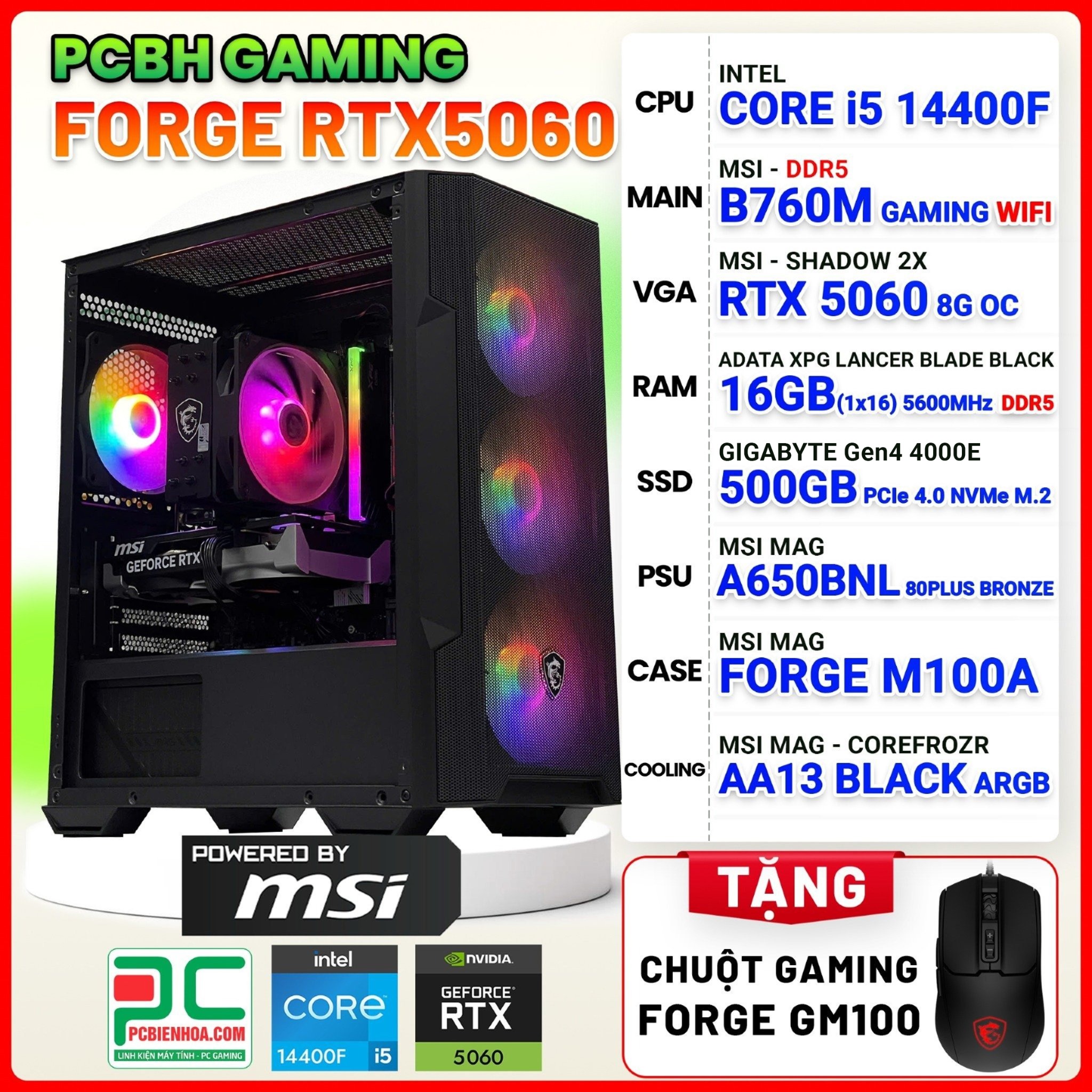 PCBH GAMING MSI FORGE CORE i5 14400F / B760M WIFI / RTX 5060 8GB / 16GB DDR5 / 500GB