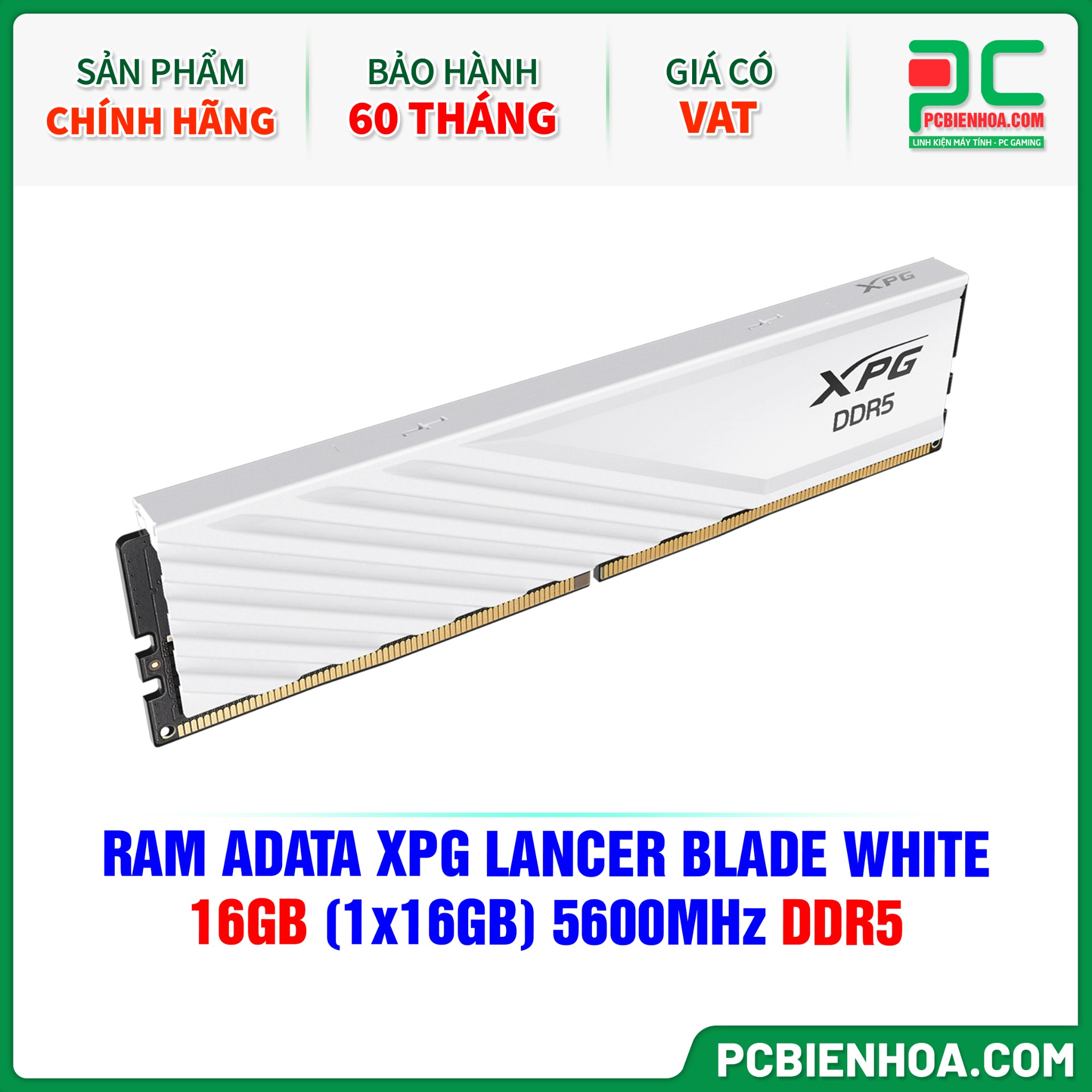 RAM ADATA XPG LANCER BLADE WHITE - 16GB (1x16GB) 5600MHz DDR5