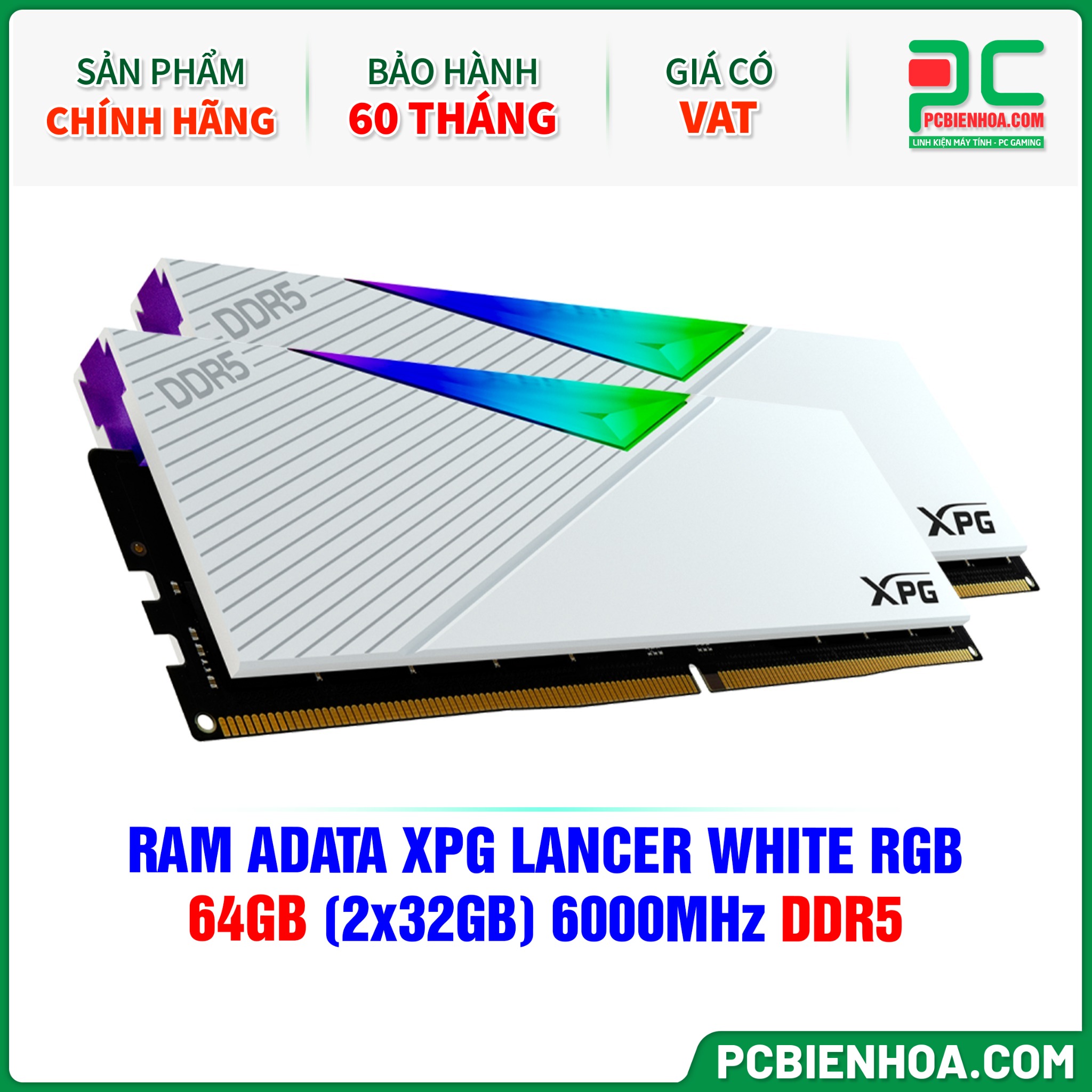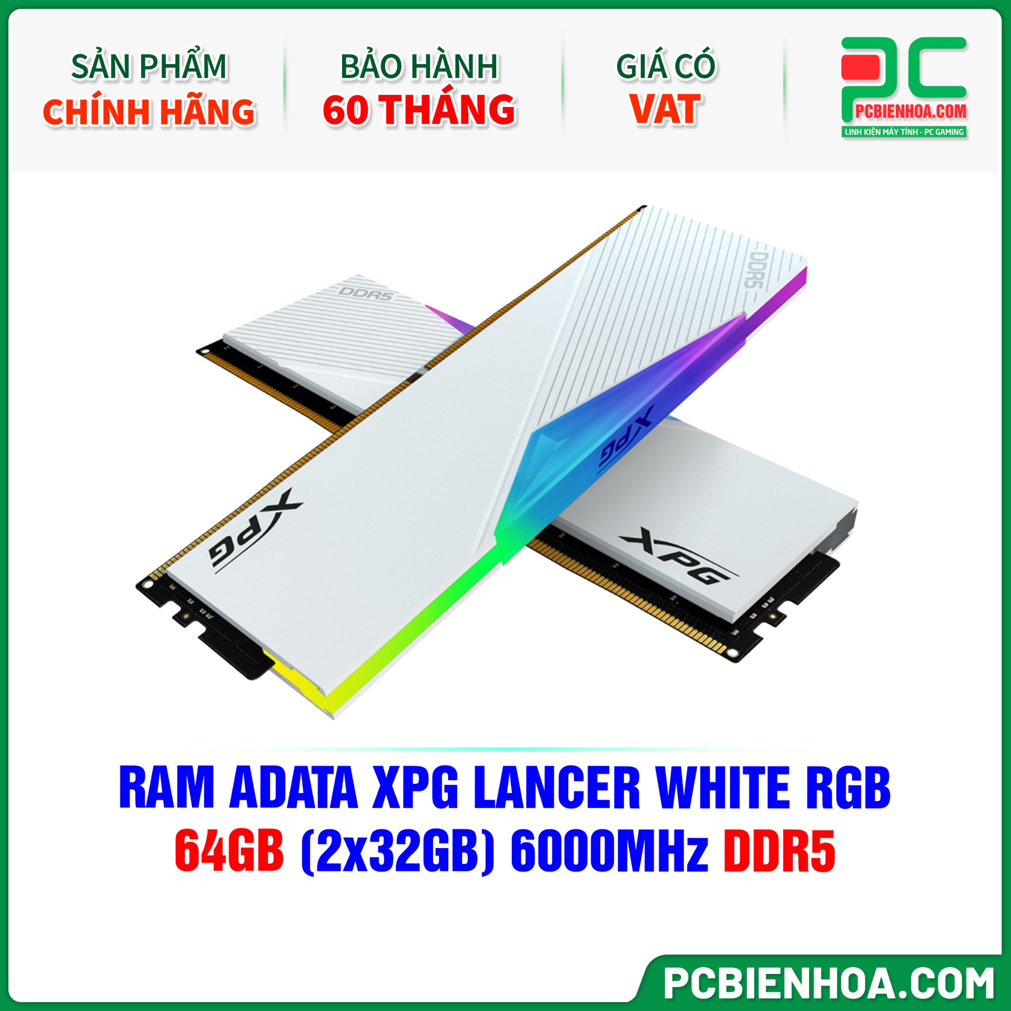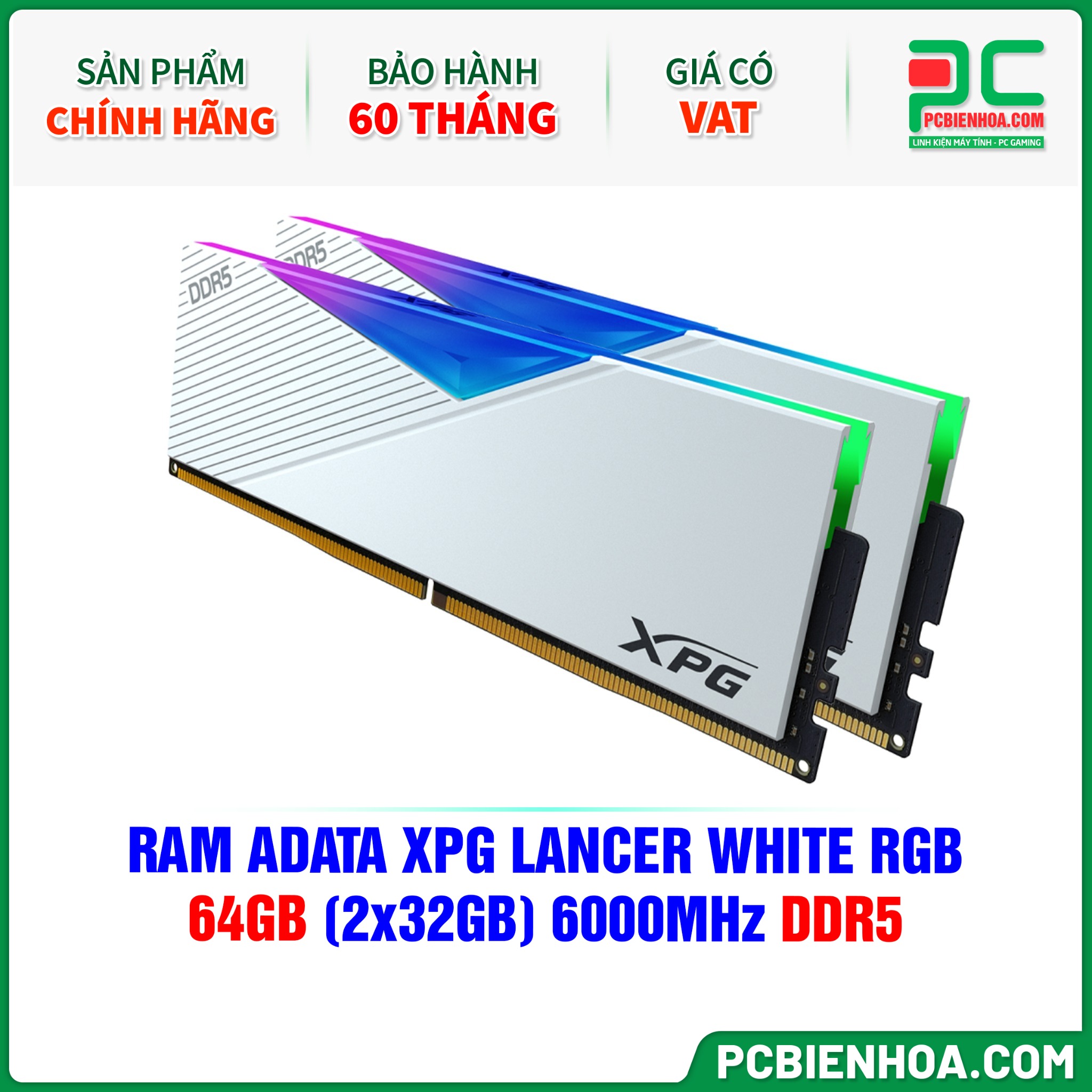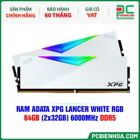 RAM ADATA XPG LANCER WHITE RGB - 64GB (2x32GB) 6000MHz DDR5