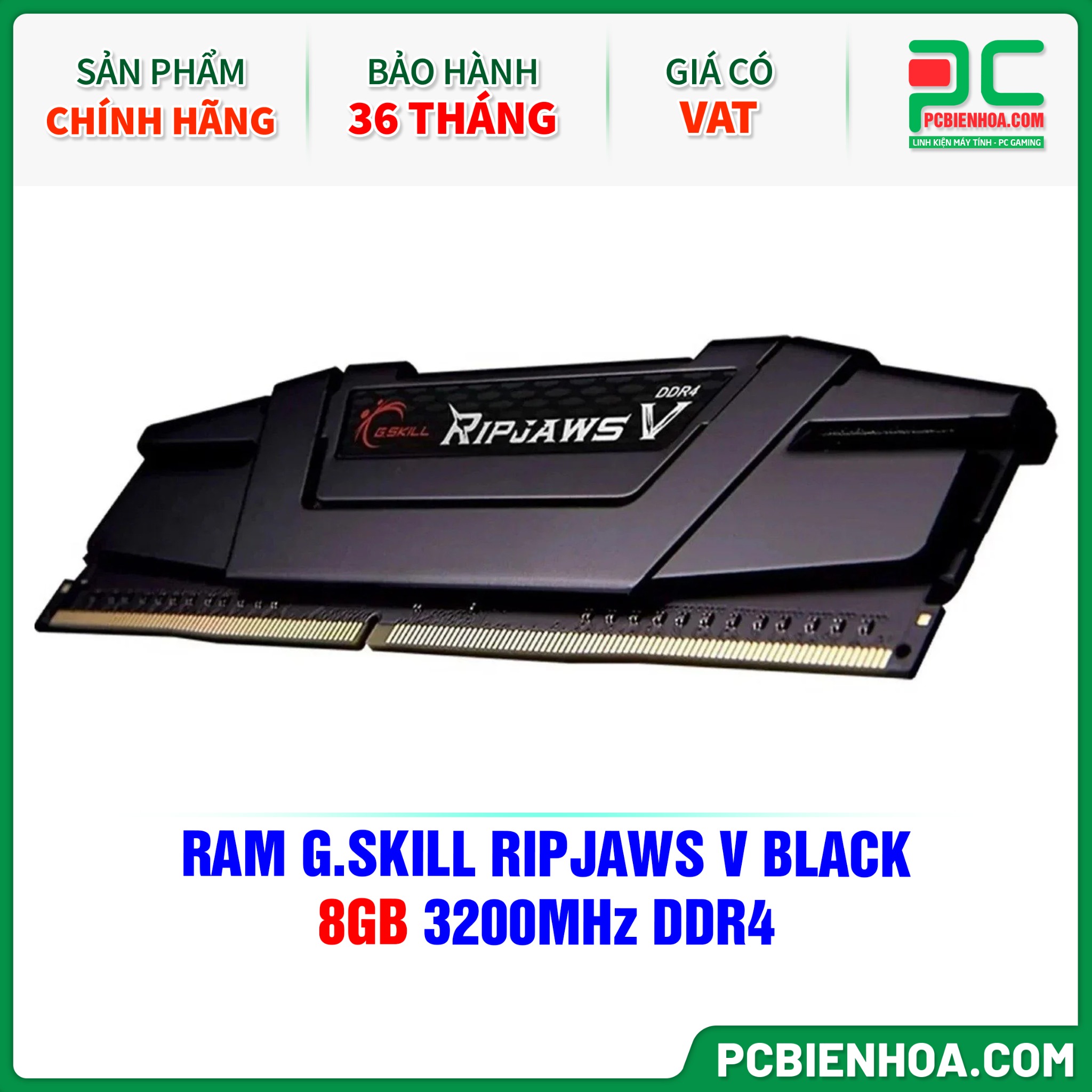 RAM G.SKILL RIPJAWS V BLACK - 8GB 3200MHz DDR4 (F4-3200C16S-8GVKB)