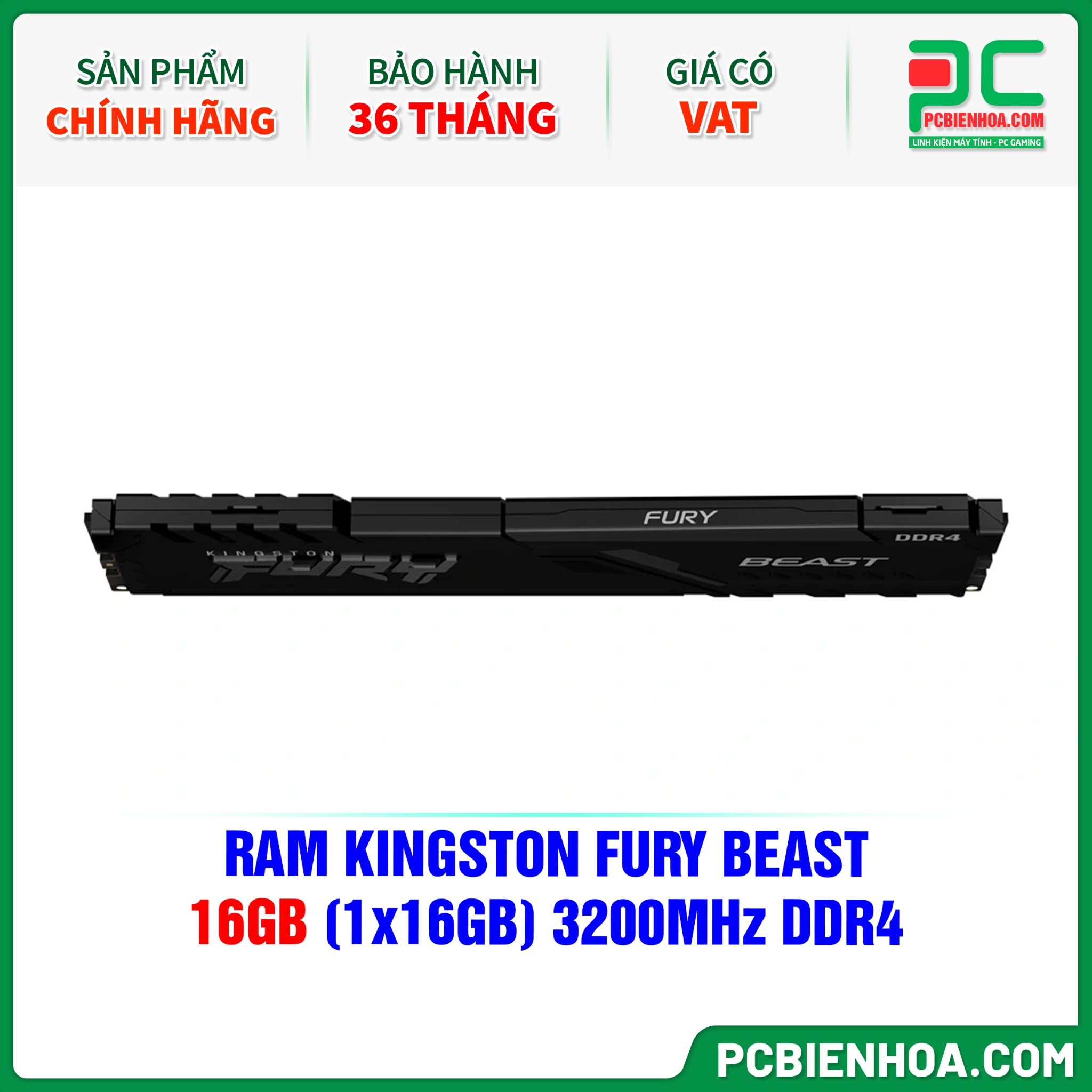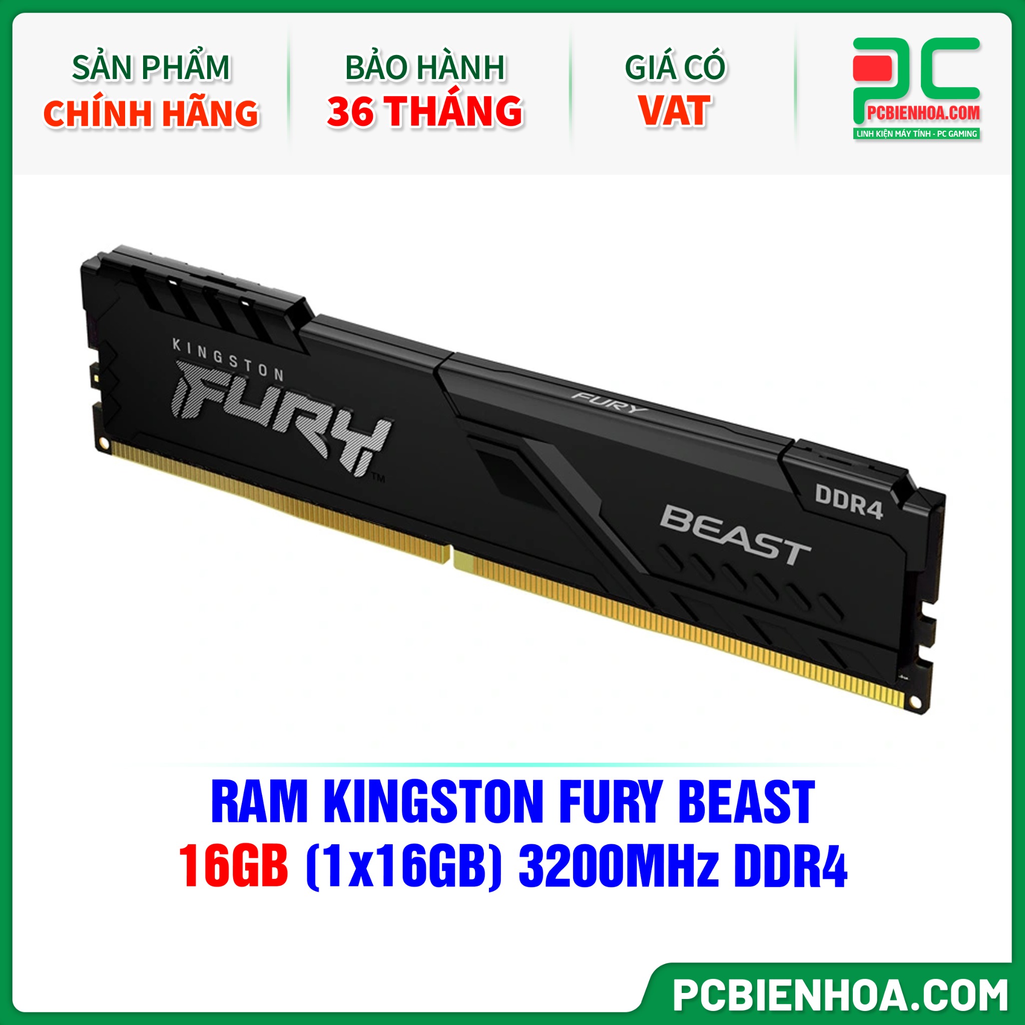 RAM KINGSTON FURY BEAST - 16GB (1x16GB) 3200MHz DDR4