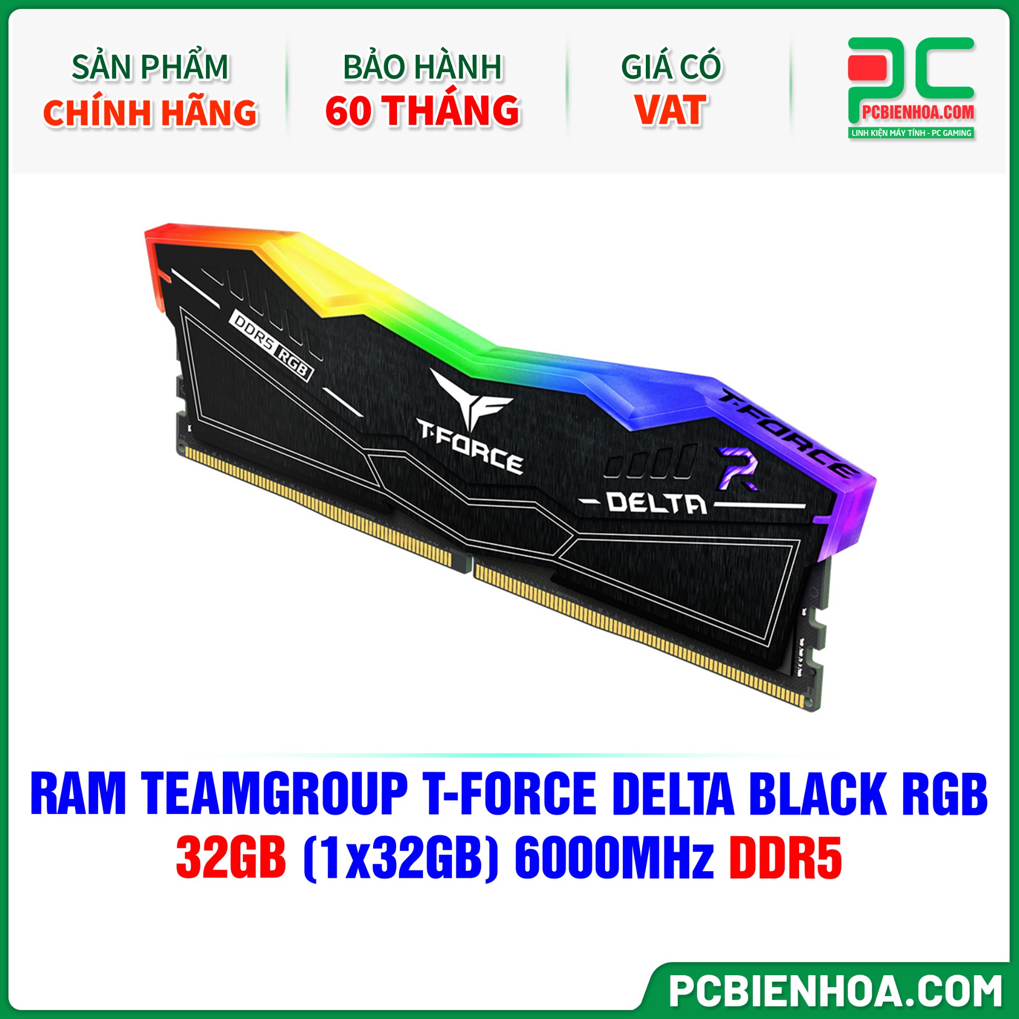 RAM TEAMGROUP T-FORCE DELTA BLACK RGB - 32GB (1x32GB) 6000MHz DDR5