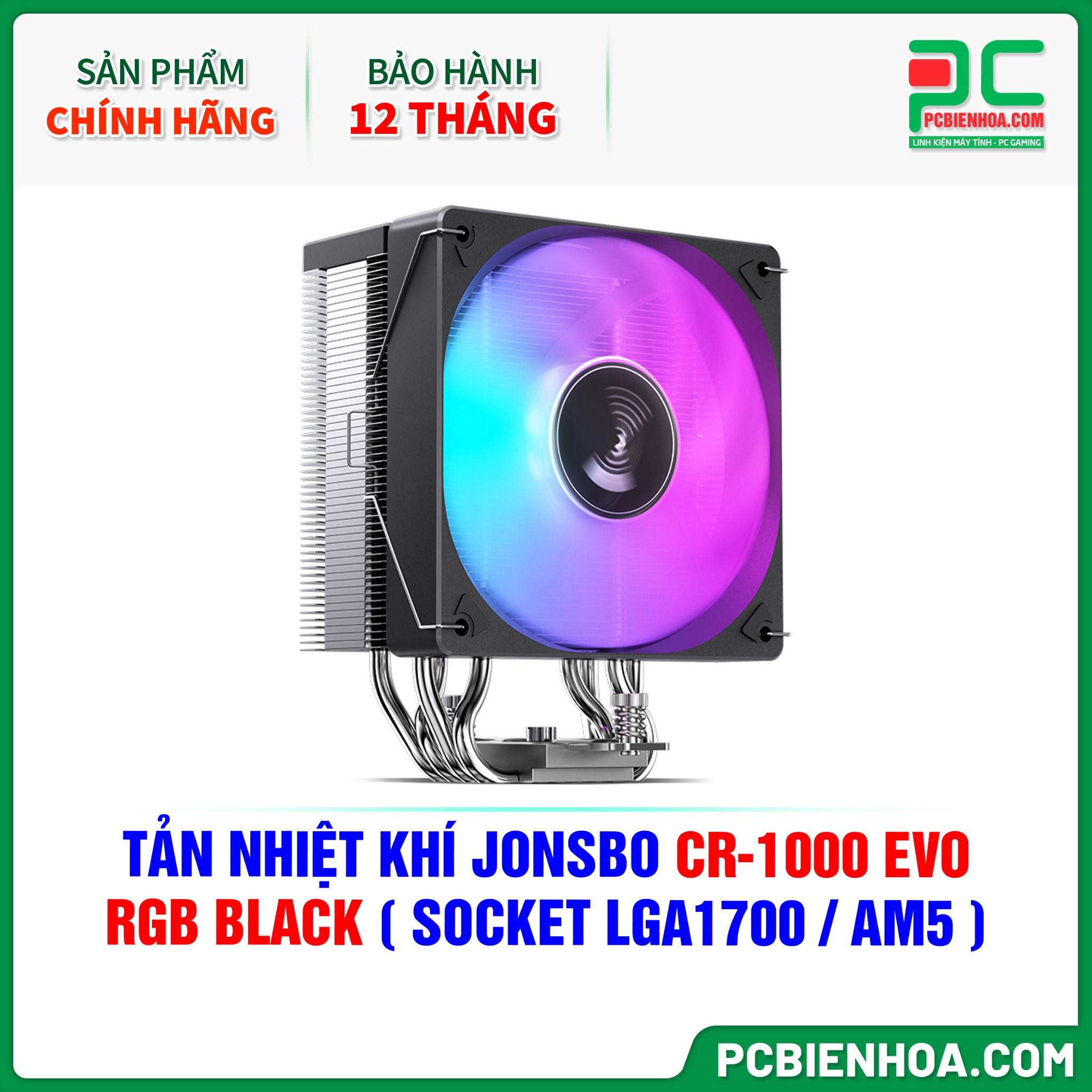 TẢN NHIỆT KHÍ JONSBO CR-1000 EVO RGB BLACK ( HỖ TRỢ SOCKET LGA1700 / AM5 )