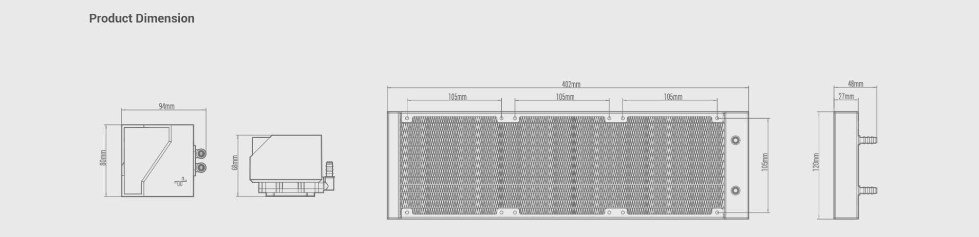 Radiator Dimensions | 402×120×27 mm(L×W×H) |