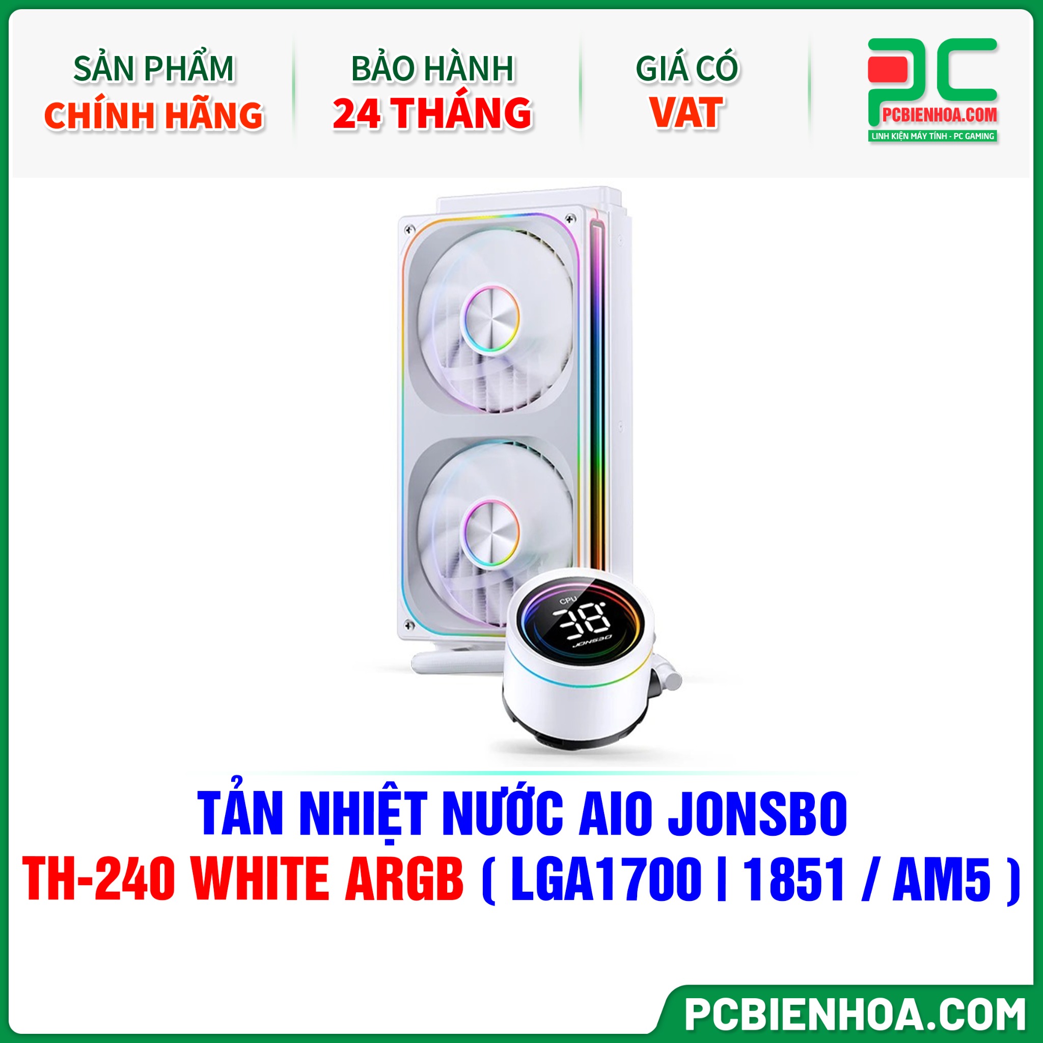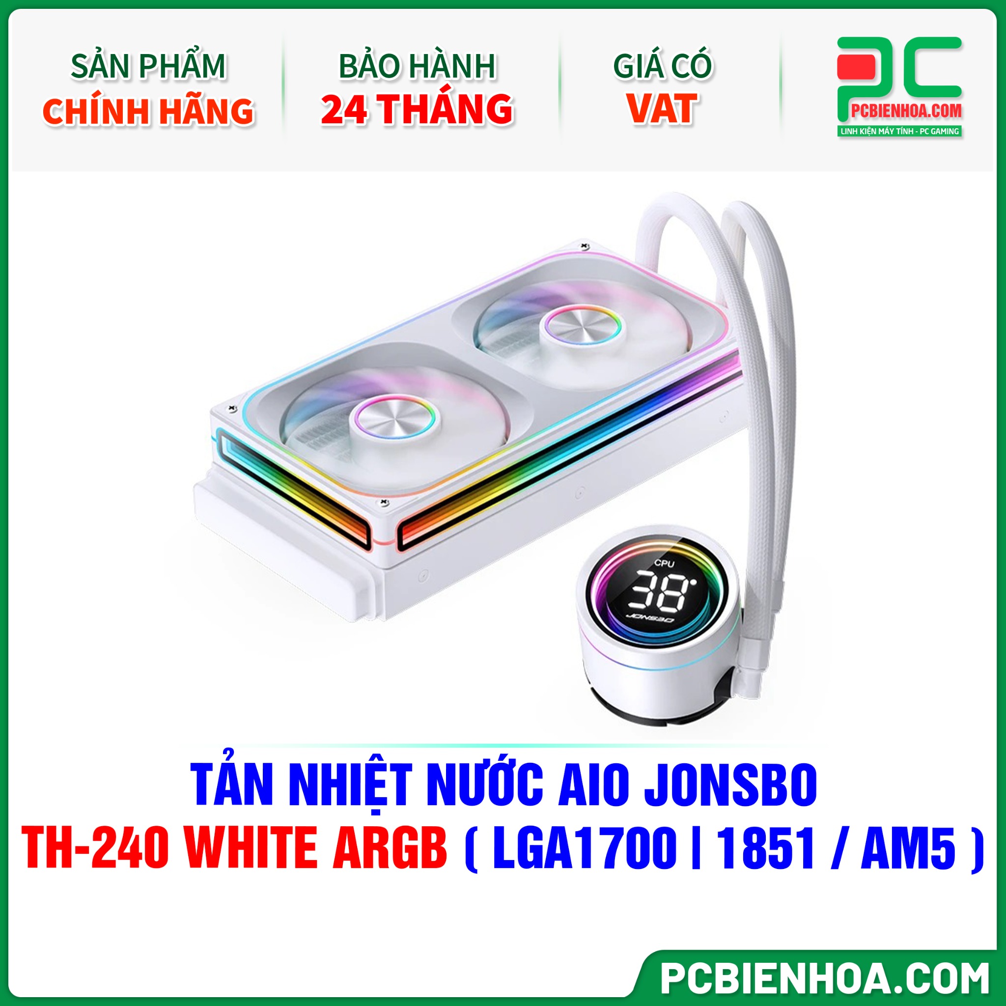 TẢN NHIỆT NƯỚC AIO JONSBO TH-240 WHITE ARGB ( HỖ TRỢ SOCKET LGA1700|1851 / AM5 )