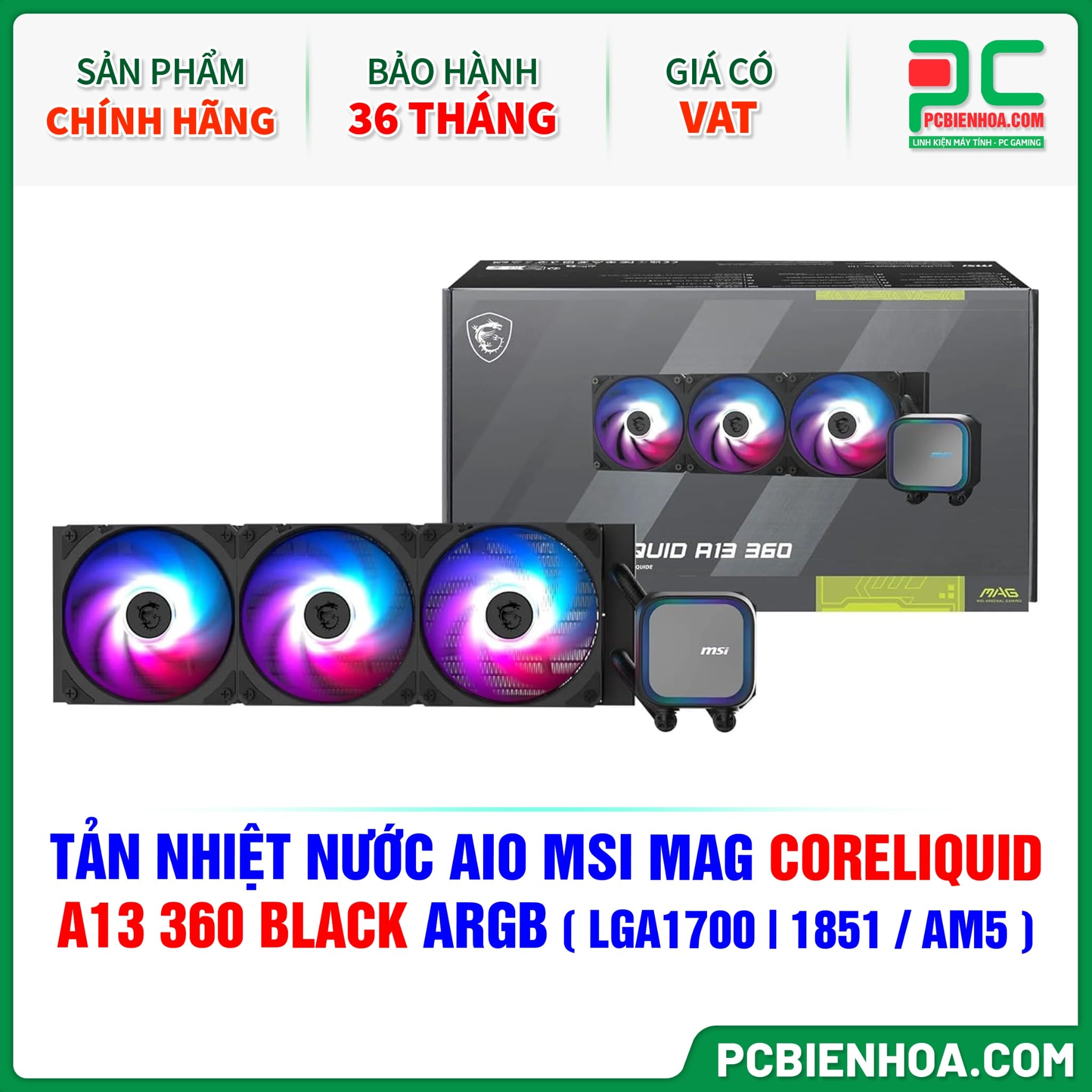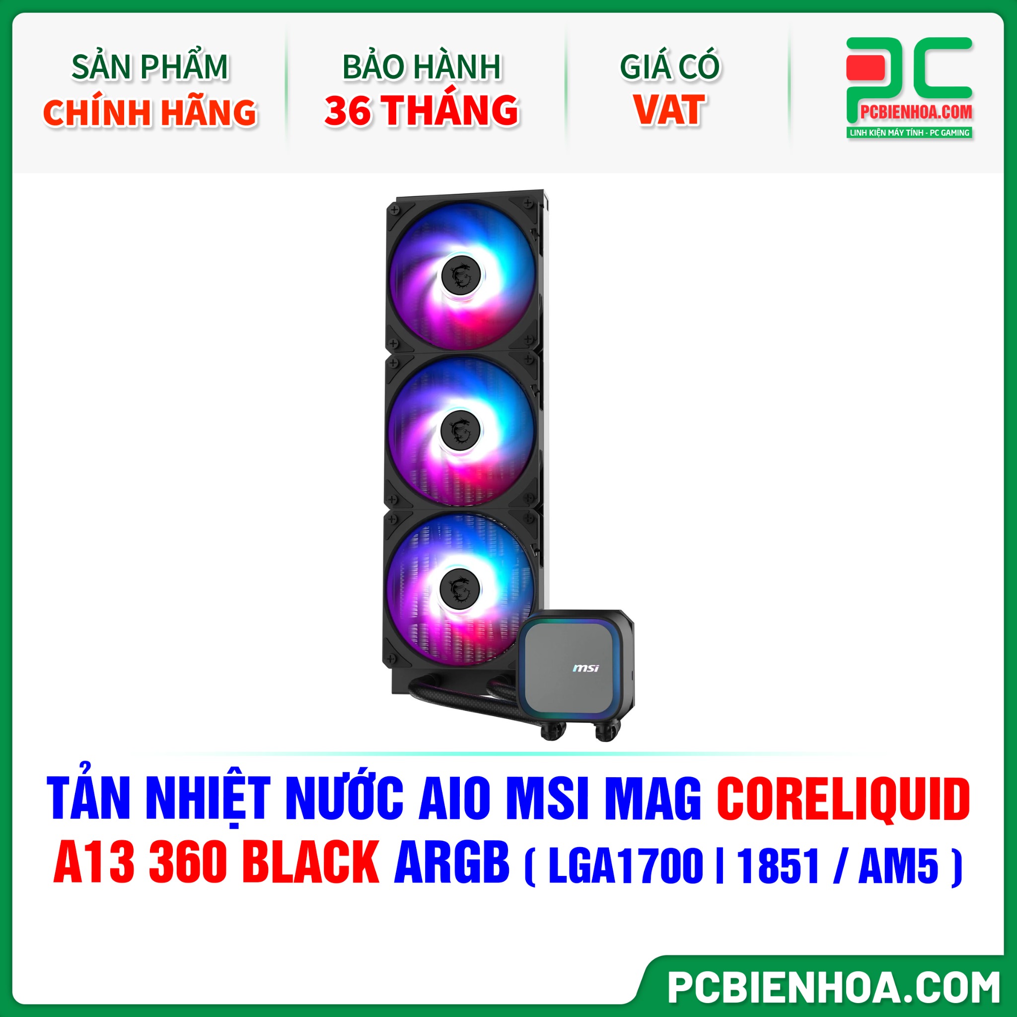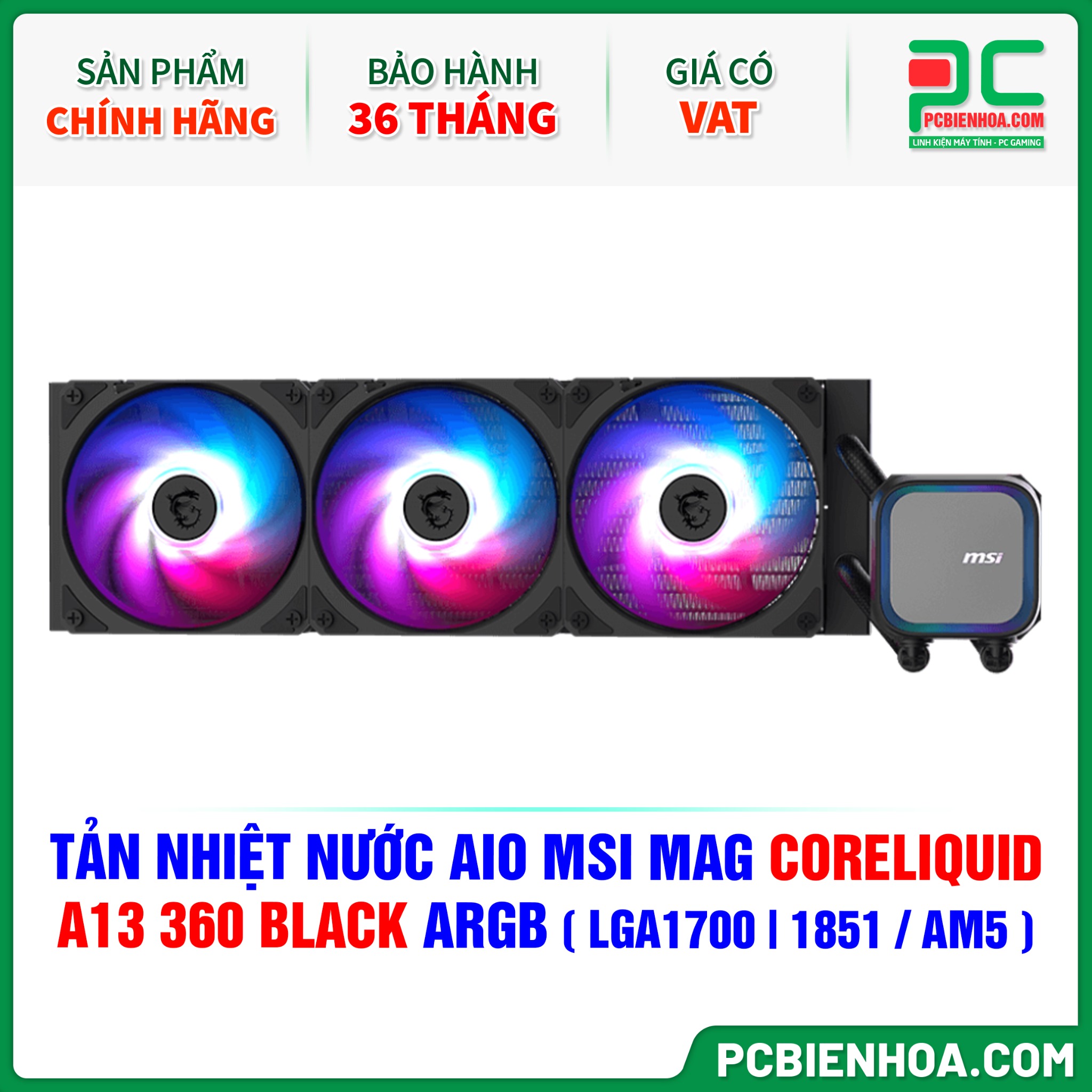 TẢN NHIỆT NƯỚC AIO MSI MAG CORELIQUID A13 360 BLACK ARGB ( HỖ TRỢ SOCKET LGA1700 | 1851 / AM5 )
