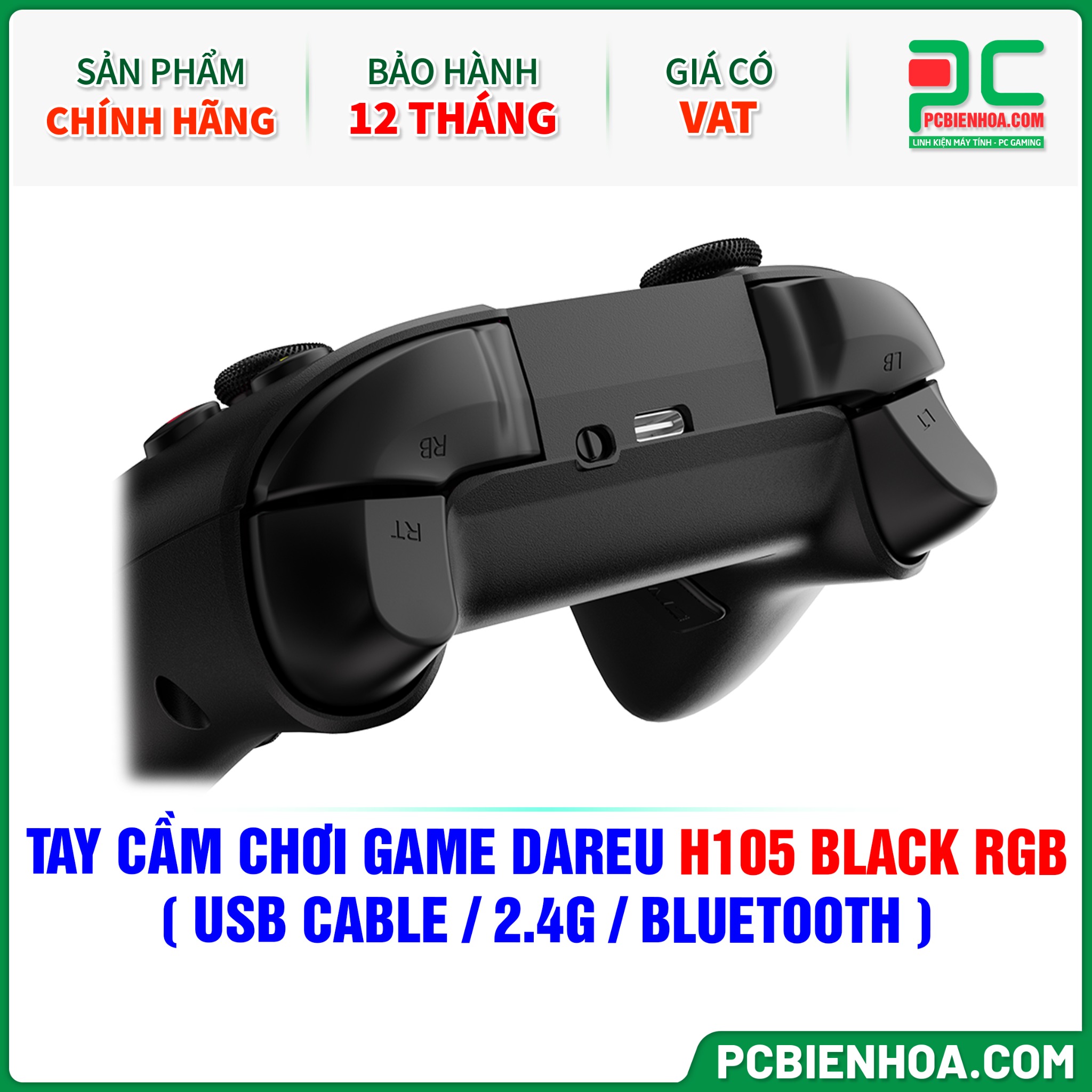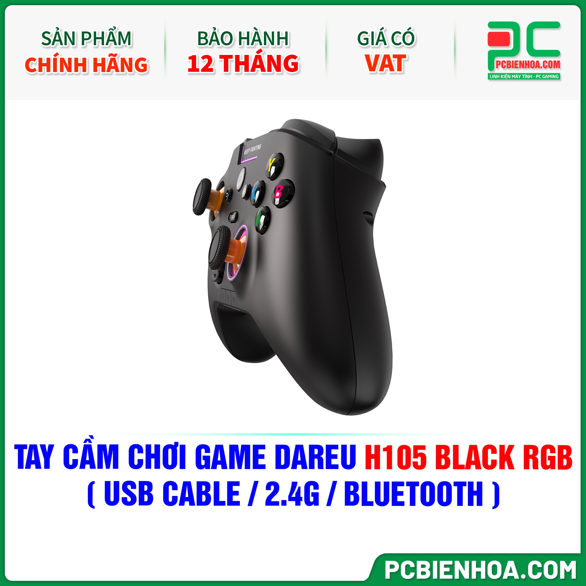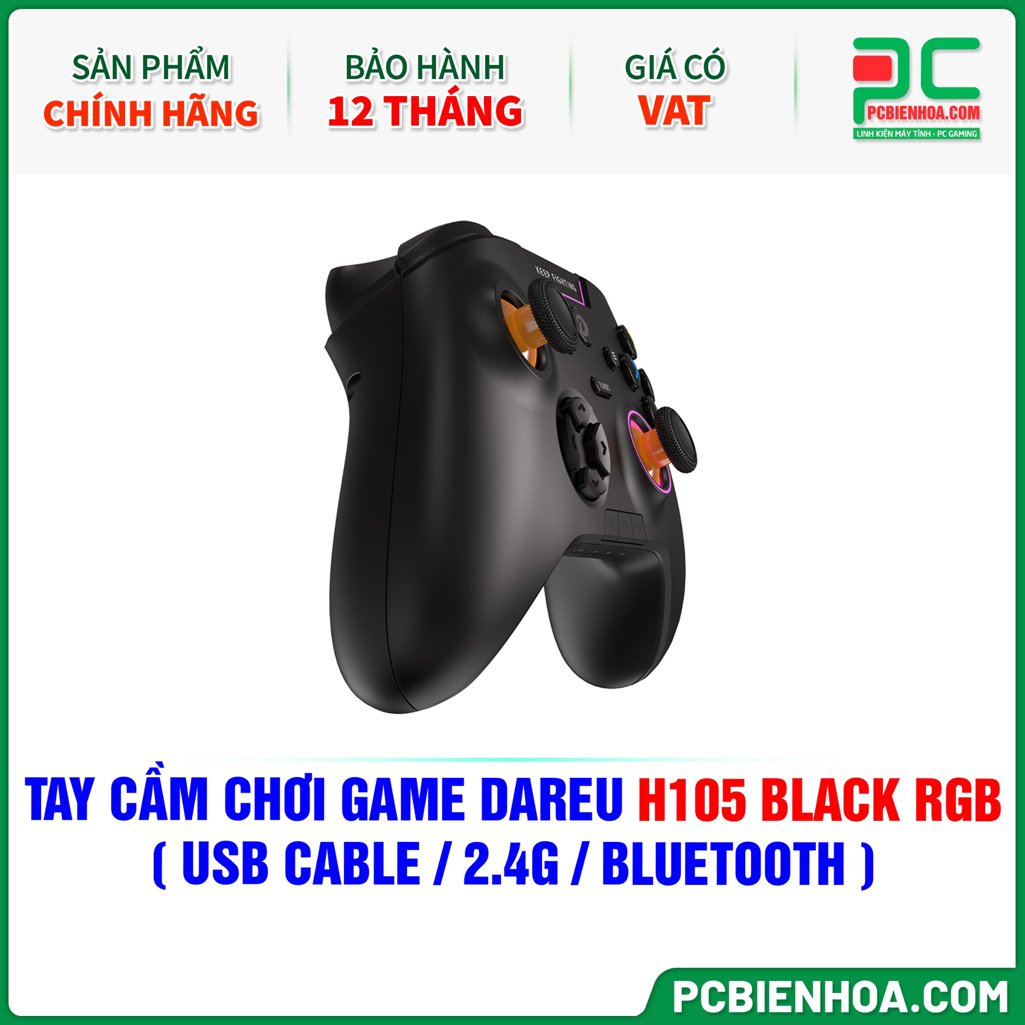 TAY CẦM CHƠI GAME DAREU H105 BLACK RGB ( USB CABLE / 2.4G / BLUETOOTH )