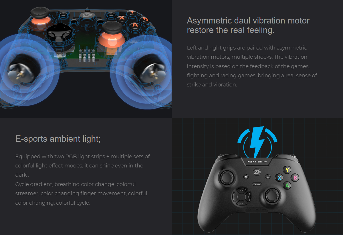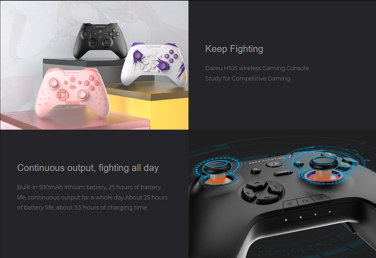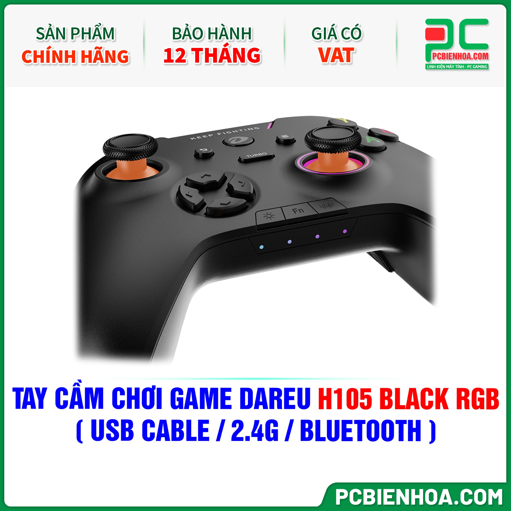 TAY CẦM CHƠI GAME DAREU H105 BLACK RGB ( USB CABLE / 2.4G / BLUETOOTH )