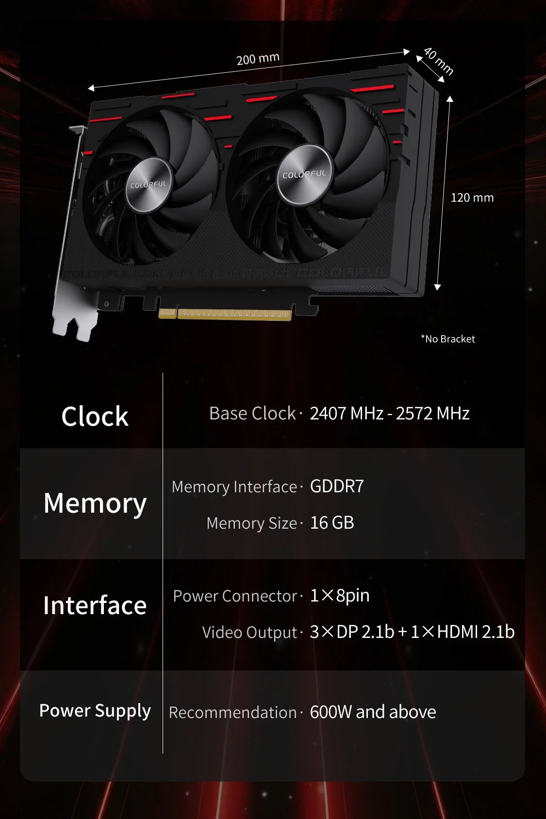 Model | Colorful GeForce RTX 5060 Ti Gaming DUO 16GB-V |
