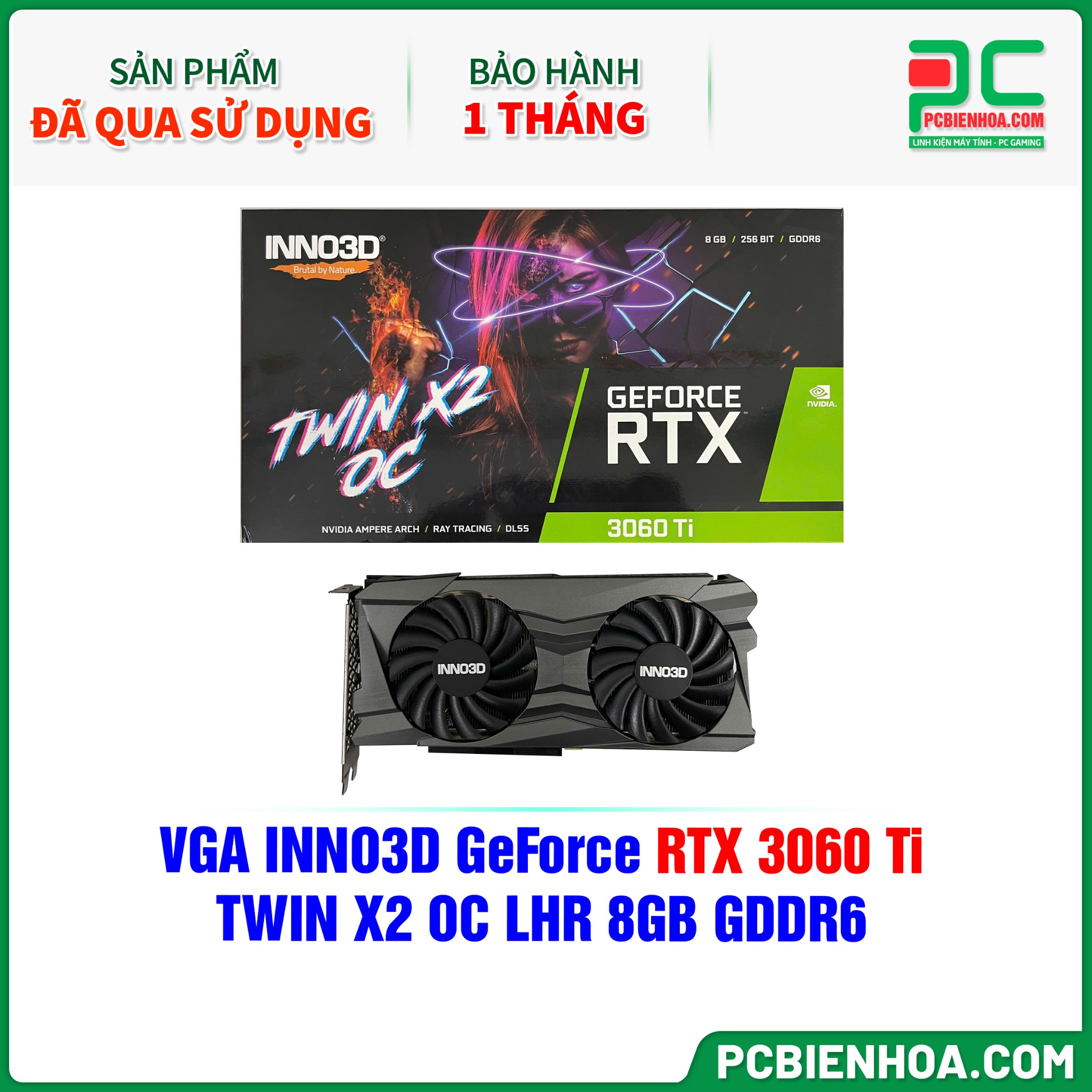 HÀNG ĐÃ QUA SỬ DỤNG - VGA INNO3D GeForce RTX 3060 Ti TWIN X2 OC LHR 8GB GDDR6 - BẢO HÀNH 1 THÁNG